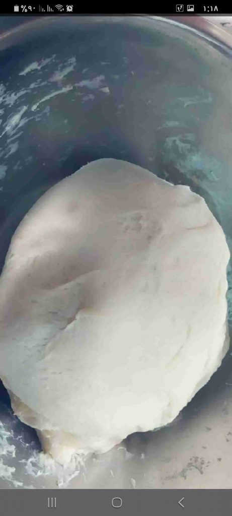 أضيف الطحين والزيت والملح والخل وتعجن جيدا الى ان نحصل على عجينة متماسكة لا تلتصق بجدران الاناء….