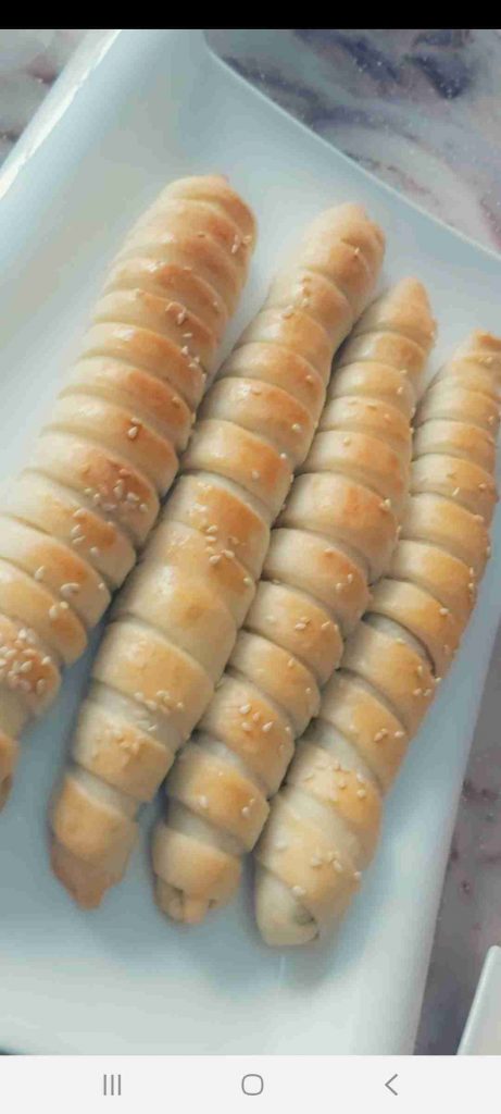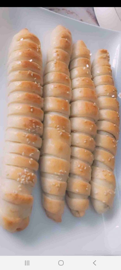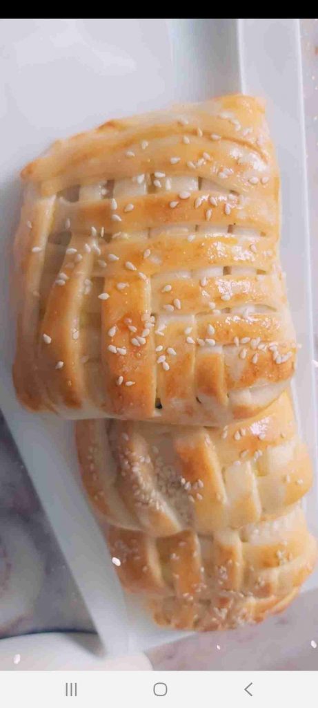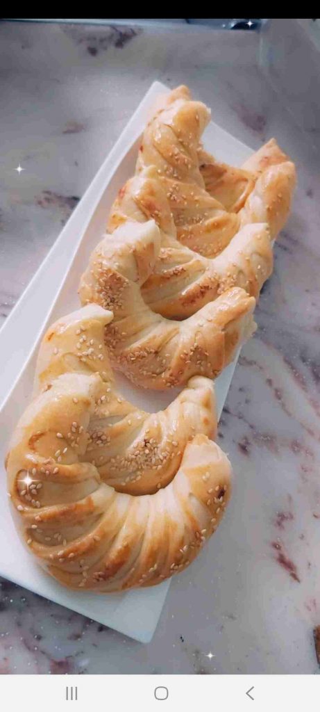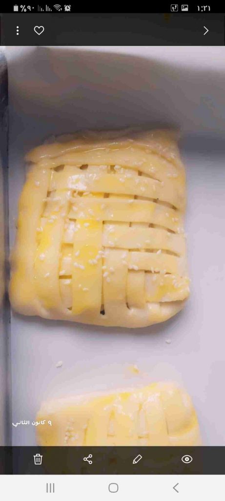 تدهن بصفار البيض وترش بالسمسم وتدخل فرن محمي مسبقا على ١٨٠ درجة على الرف الوسط الى ان تشقر جيدا من تحت ومن فوق…
