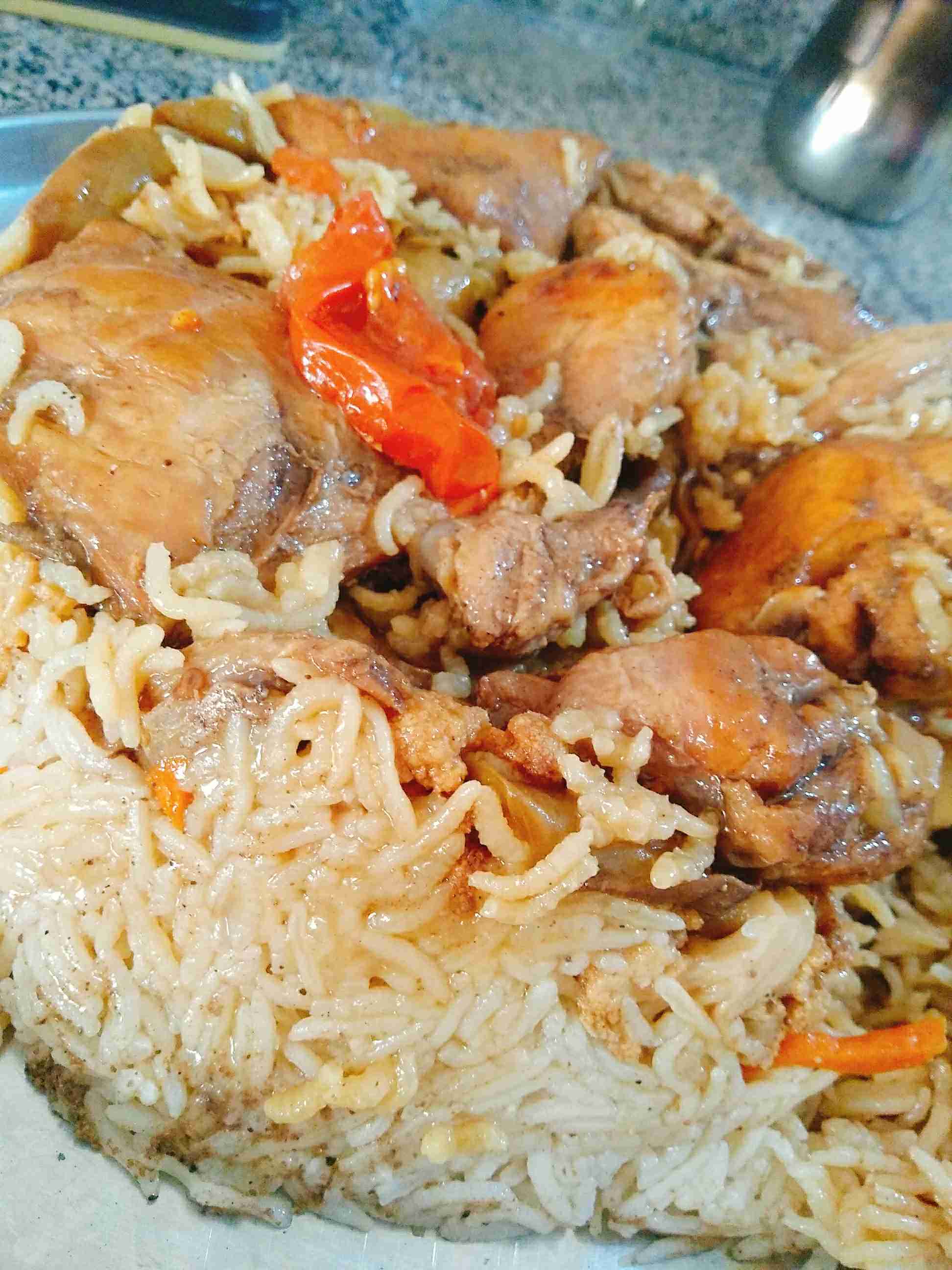 - ٢ كوب ارز منقوع لربع ساعه( خليط بين البسمتي والمصري)
