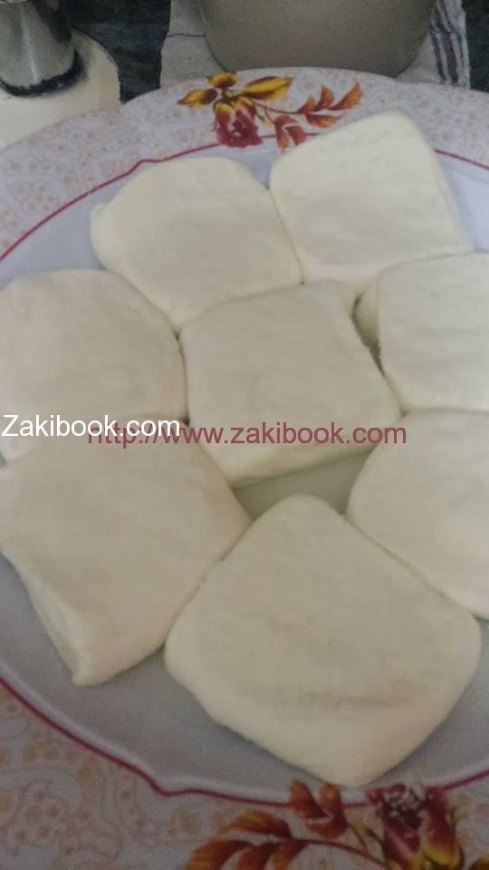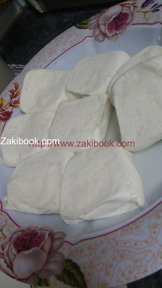 – سخني الحليب على النار حتي يكون دافي وبتحطي المساه وبتكمريها وبتصير كتله كبيره وبعدين بتقطعيها في شرايط صغار وبترديدهم ثلاث مرات وبعدين بتحطيهم تحت الحجر نص ساعه منشان تزل المي منها وصحتين.