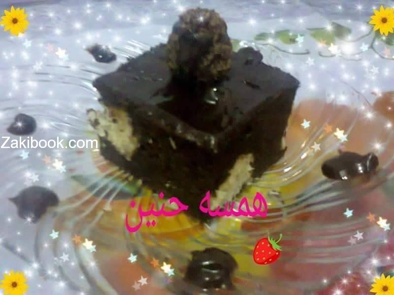 كوب سكر وكوب لبن ٤ملاعق كاكاوخام كله في الخلاط وكوب زيت عليهم سرسوب (يعني خيط رفيع) لحد مايتقل وبناخد كوب من الخليط نشيله في التلاجه ودا الصوص والباقي نضع عليه ٢بيضه وفانيلا وكوب دقيق وبودر ودا الكيك.