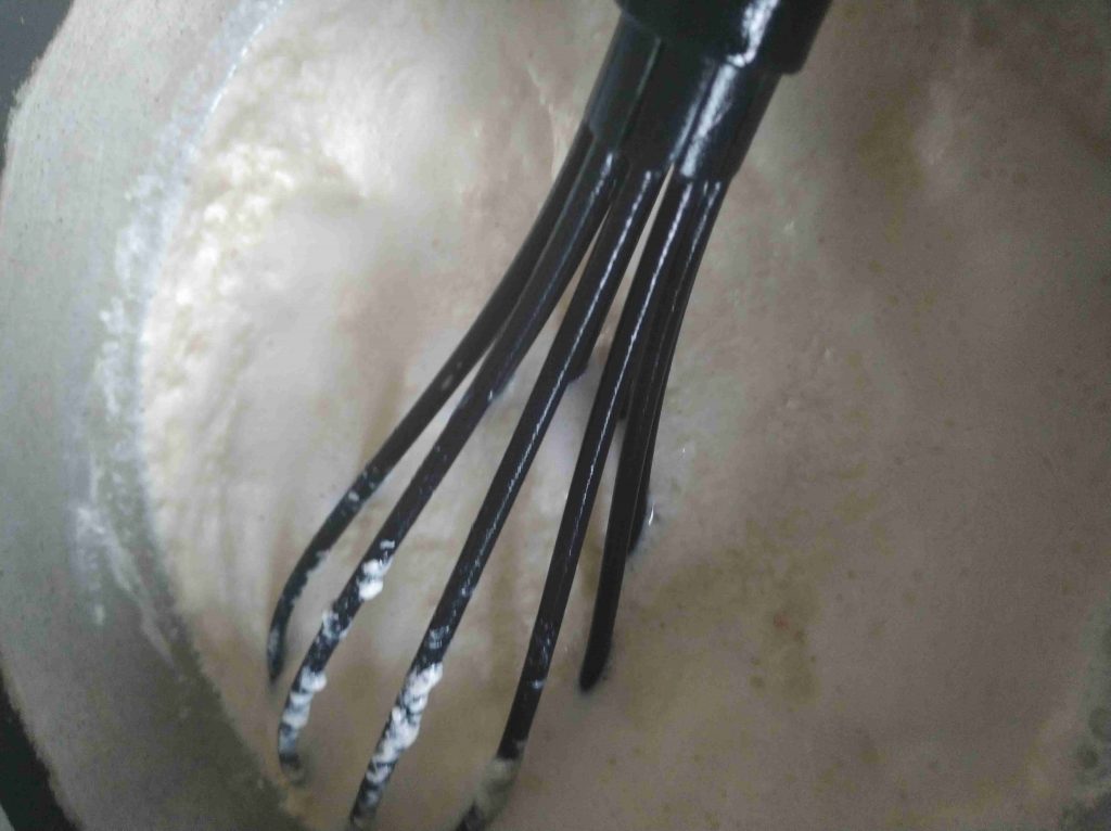 نضع جميع المواد في الخلاط ما عدا الزيت و الماء ونخلطهم حتى يتجانسوا و بعدين نضيف الماء و الزيت ونرجع نخلطهم مع بعض.