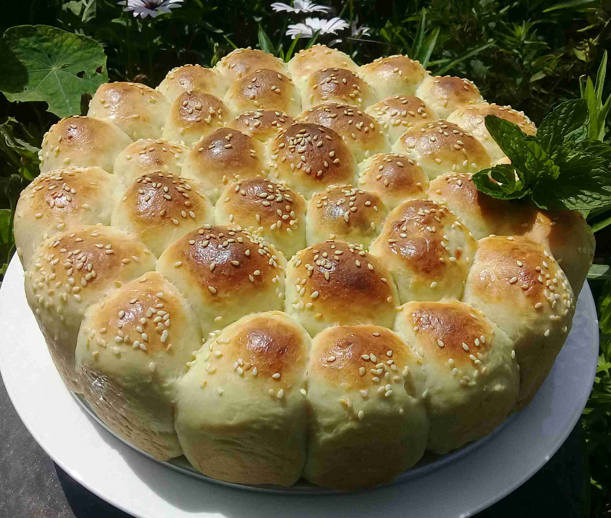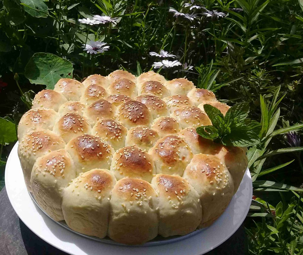 بنتركها ترتاح شئ عشر دقائق وبعدين بنخبزها على درجه حراره متوسطه لما الأطراف تصير لونها دهبي بنحمر الوجه بعدها بنغطيها بفوطه شئ عشر دقائق لتم طريه