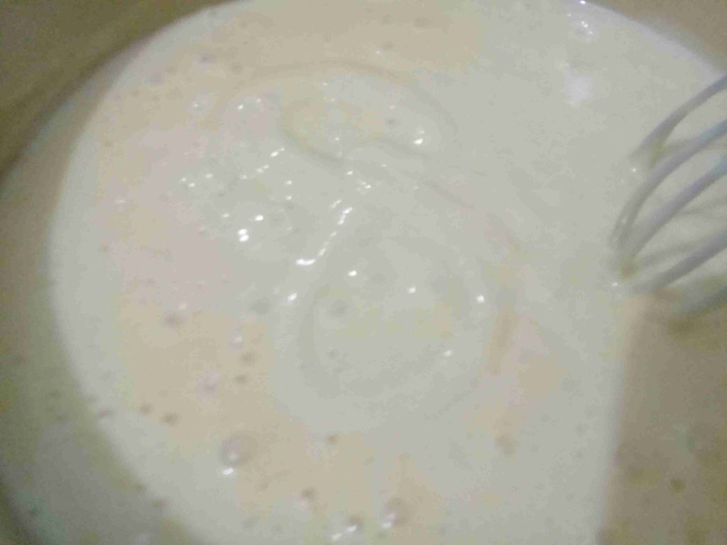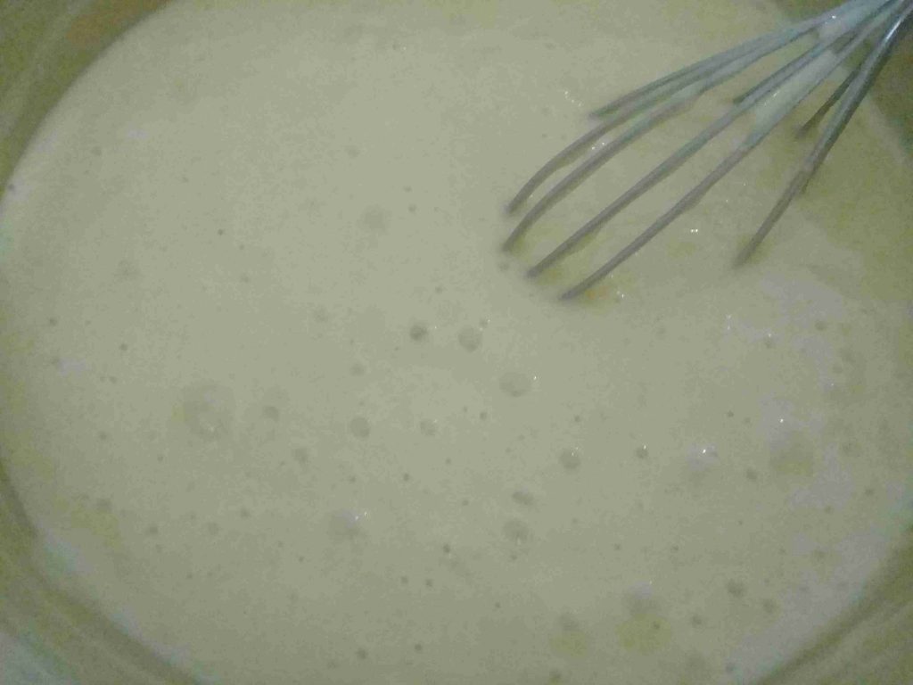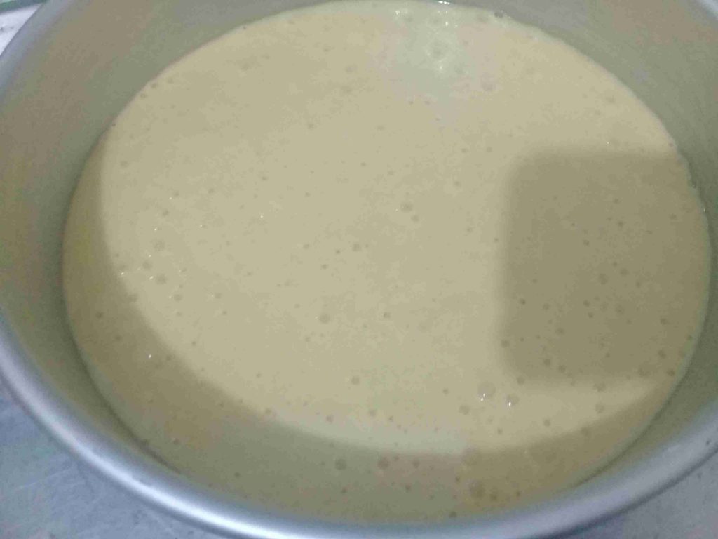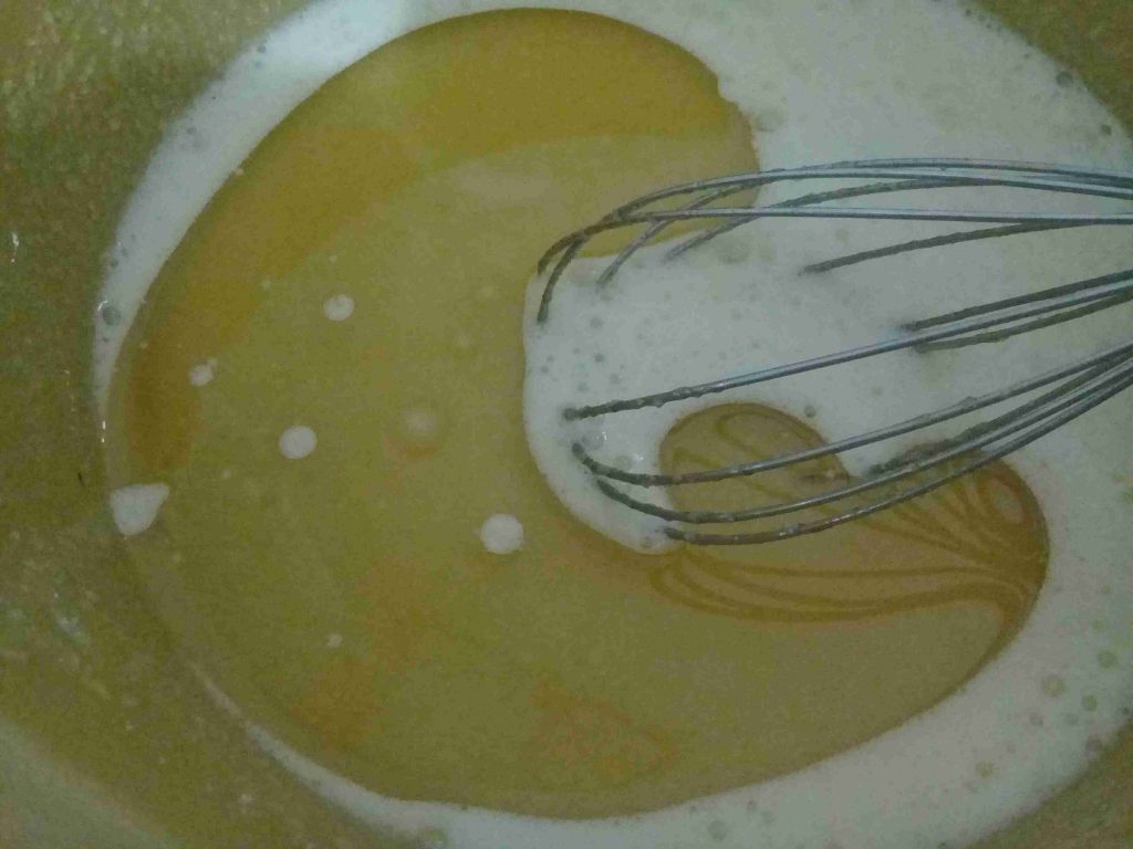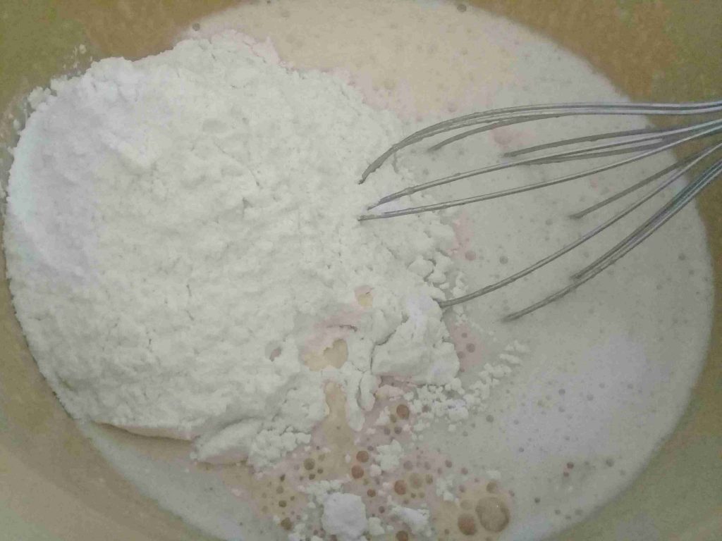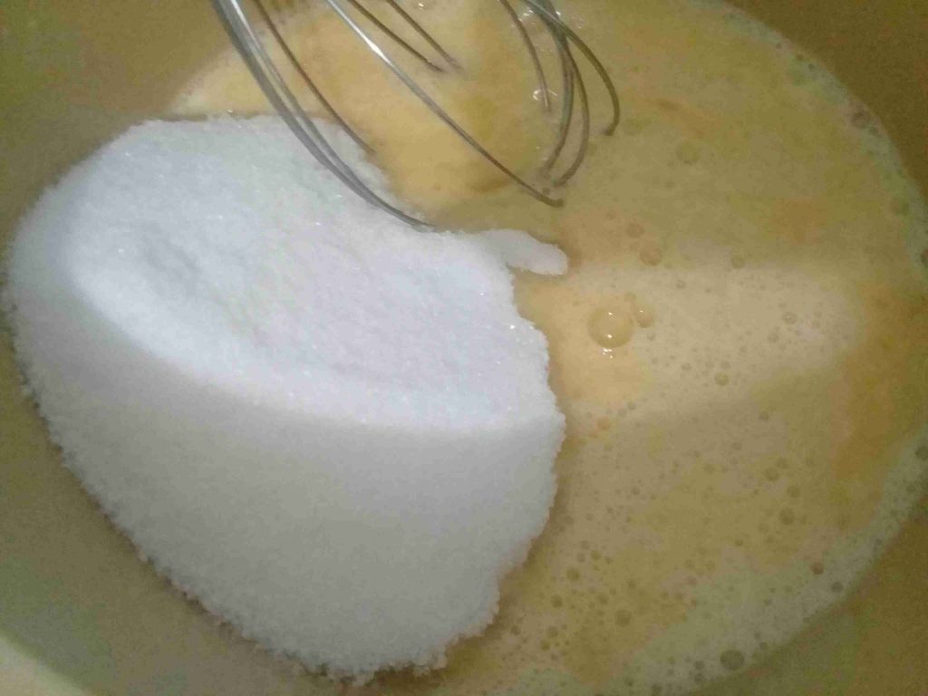 في وعاء بنخفق البيض مع الفانيلا والخل لما يصير لونه على بياض وينفش بنضيف السكر وبنخفق لما يدوب إشويه بعدها بنحط الزيت وبنخفق بنخل الطحين مع البيكنج بودر