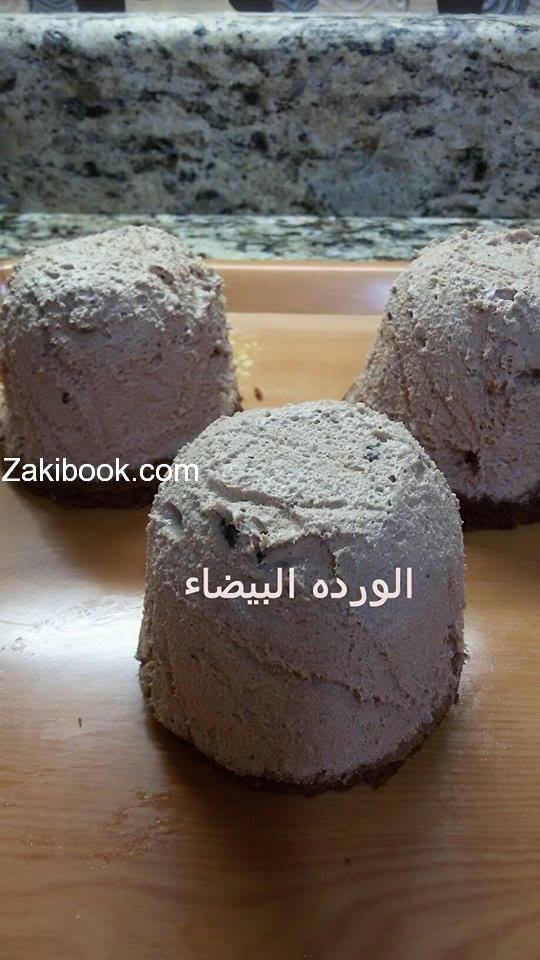 وتكوني مجهزة جناش شكلاطة خام ادوبيها في كريم الخفق وتصبي منها عالكريم شانتي وتخلطيهم مع كريم الخفق وضفت قطع شكلاطة صغيرة