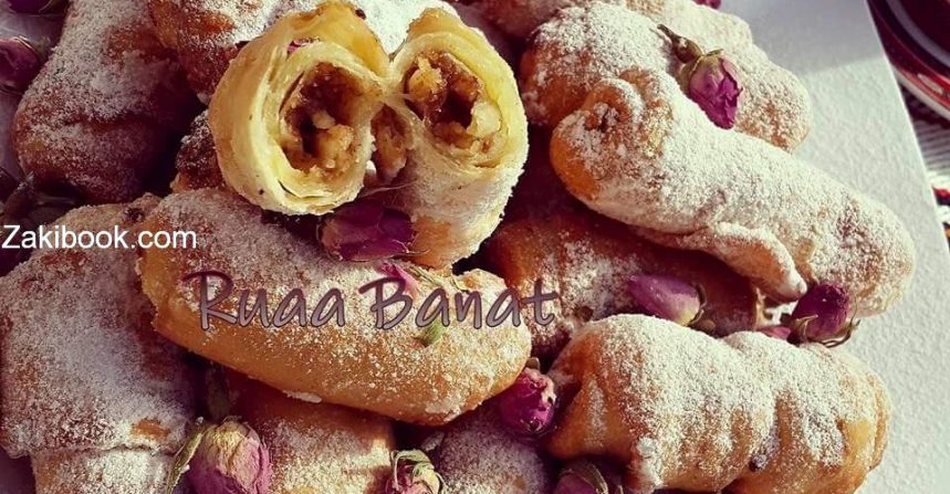 6 – ثم تقلى في زيت غزير وحامي ، حتى تتحمر من كلا الجانبين ، وترش بسكر بودرة .