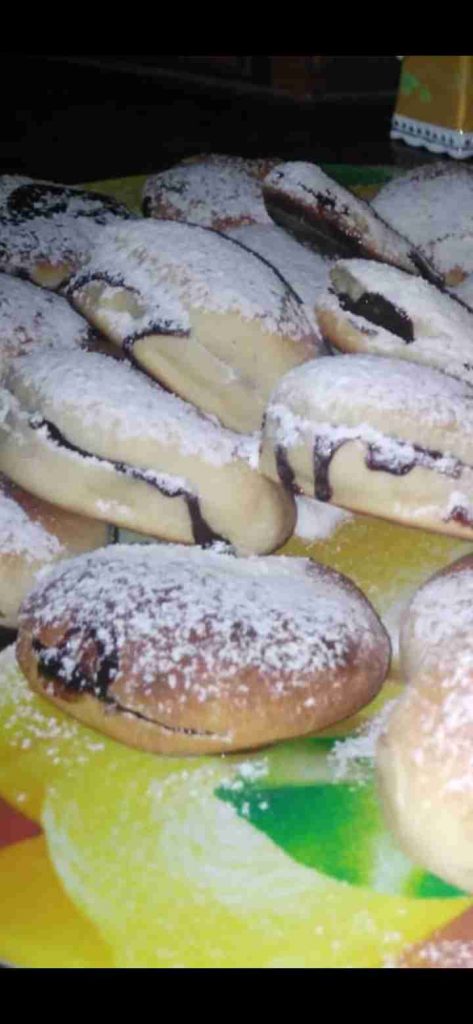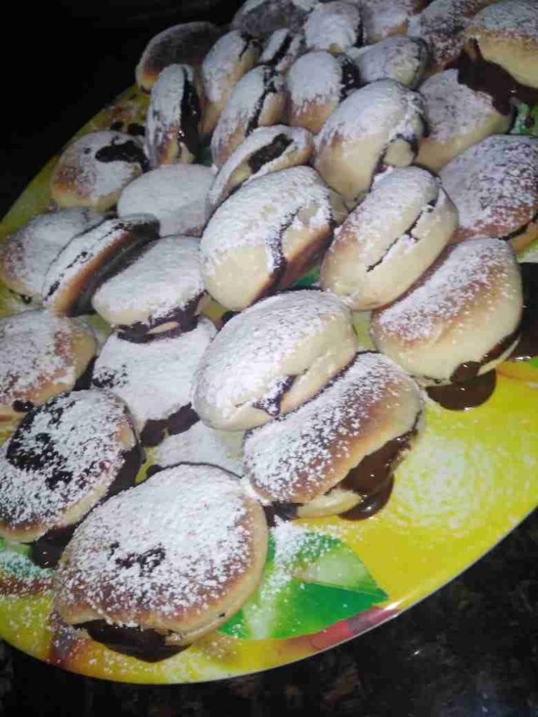 منطلعهم من الفرن ومنفتحها من فوق شوي بالسكينة ومنحشيها بالنيوتيلا