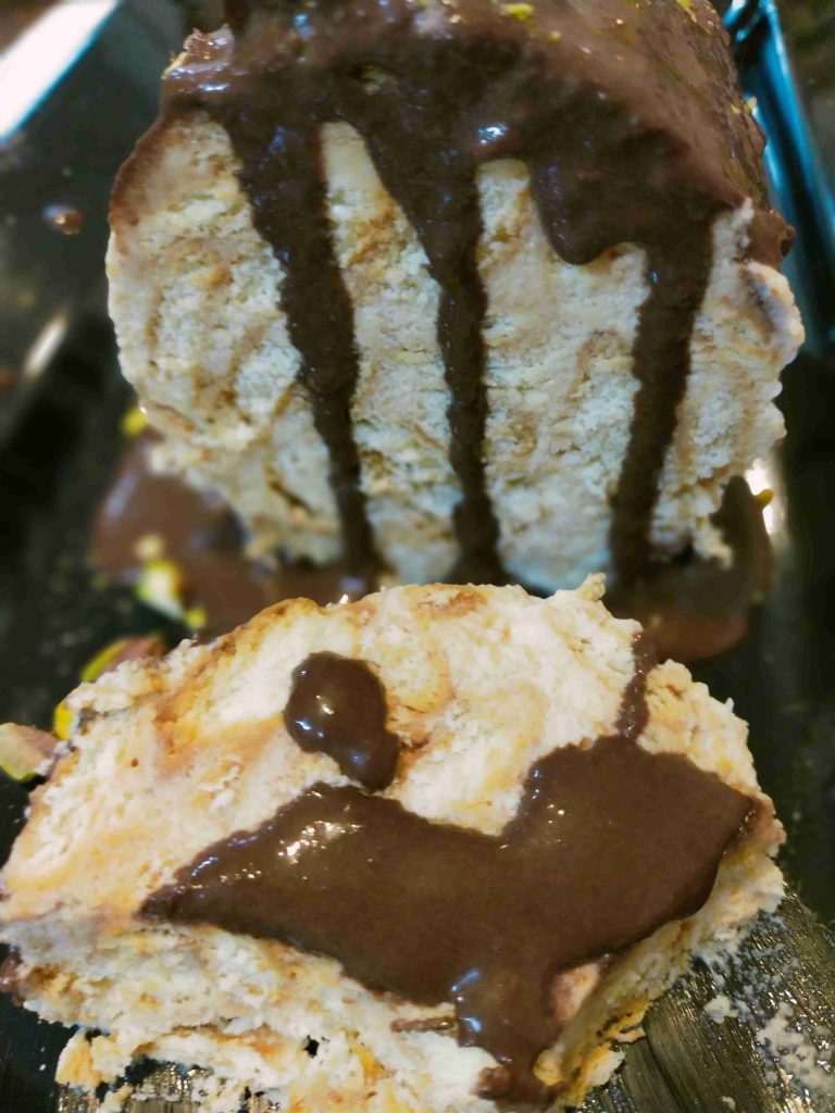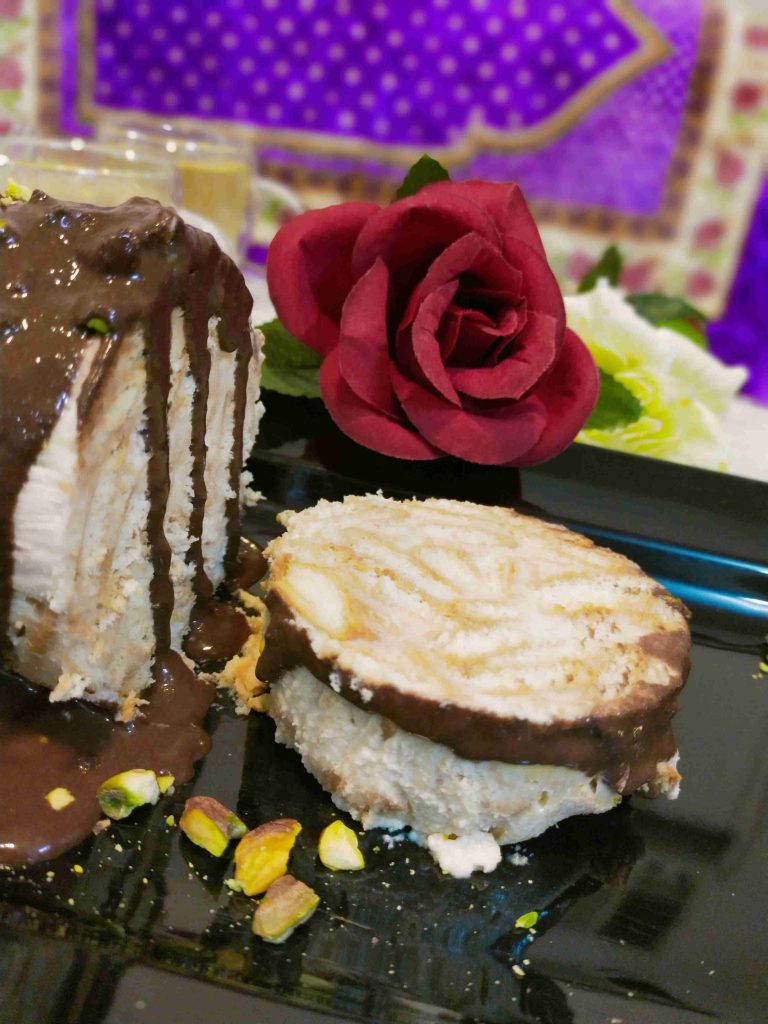 وباقي الكريمه نضيفها لكميه من البسكوت المكسر حتى نحصل على قوام قابل للتشكيل ولكم الحريه بذالك