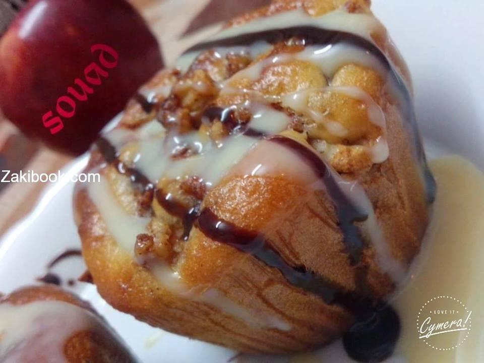تفاحة مغسولة ومقطعة مكعبات رفيعة ملعقة صغيرة قرفة ملعقة صغيرة سكر أسمر 2 ملعقة كبيرة جوز مبروش