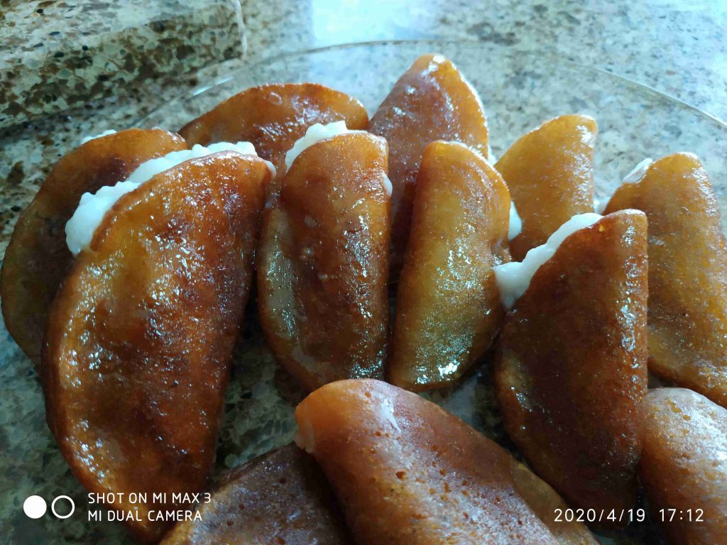توضع جميع المقادير ف الخلاط نتركها ترتاح نصف ساعة نصب في قلاية تيفال غير لاصقه بنسكرها ع شكل اقماع وتقلى ثم نضعها في قطر بارد وتحشى بالقشطه وصحتين وعافية