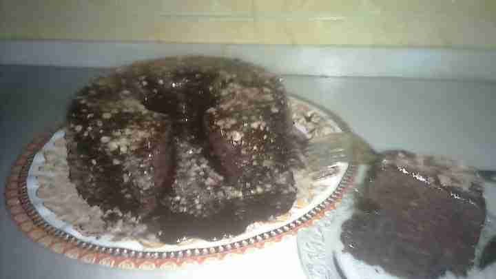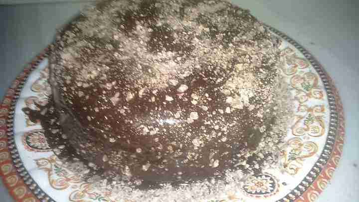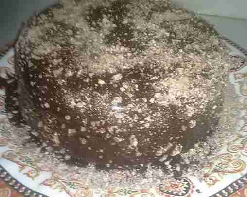 بعدين منجيب الكيكة ومنصير نصب الصوص بنص القالب لحتى يصير ينزل على الحواف ويغطي الكيكة بأكملها بعدين منزينها ببرش الشوكولا ومنتركها حتى تبرد تمامآ وتقدم بالهنا والعافية