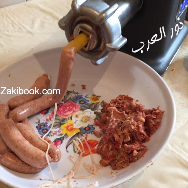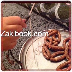 وتحشى المصارين وتعقد بيم كل حبة واخرى …ممكن تستعيني بالحشو باستعمال ماكنة فروم اللحم او ماكنة البيتي فور او بواسطة المحقن (اللي نستعملوه لما نعبي زجاجات الماء باي سائل) ويدهن بطبقة من الزيت والملح ويترك بالشمس حوالي 3ساعات ويرص بعد ذلك في عبوات خاصة بحفظ الطعام بالمجمد ويستخرج منه كل مرة عند الاستعمال….