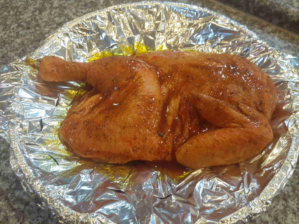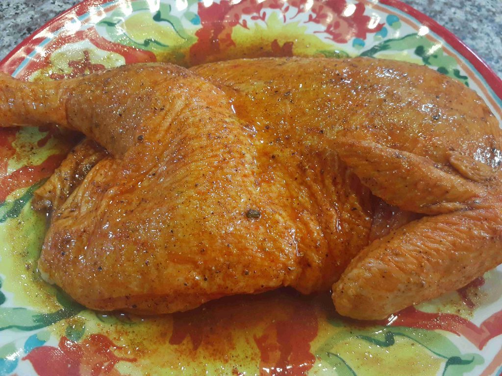 تاني شي منجيب صحن ومنحط فيو ربع كوب زيت قلي مع الزنجبيل والعصفر والملح وبهار المندي ومنخلطهم كتييييير منيح ومندهن الدجاج فيه طبعآ ( بكون غاسلة الدجاج كتيييير منيح ومنشفيتو والتقطيع متل ما بتحبي بس انا حبيت طريقة التقطيع هاي للمندي ) ومنترك الدجاج بالخلطة لمدة نص ساعة
