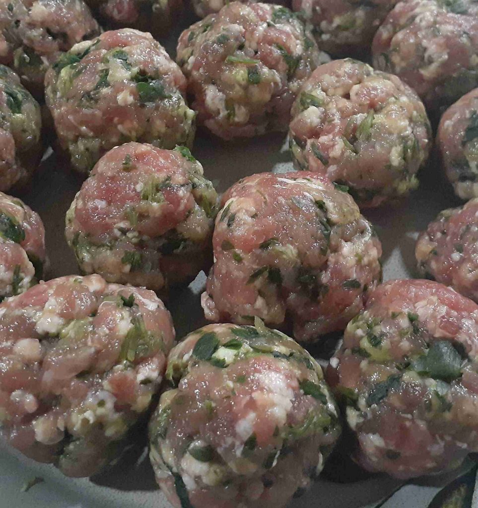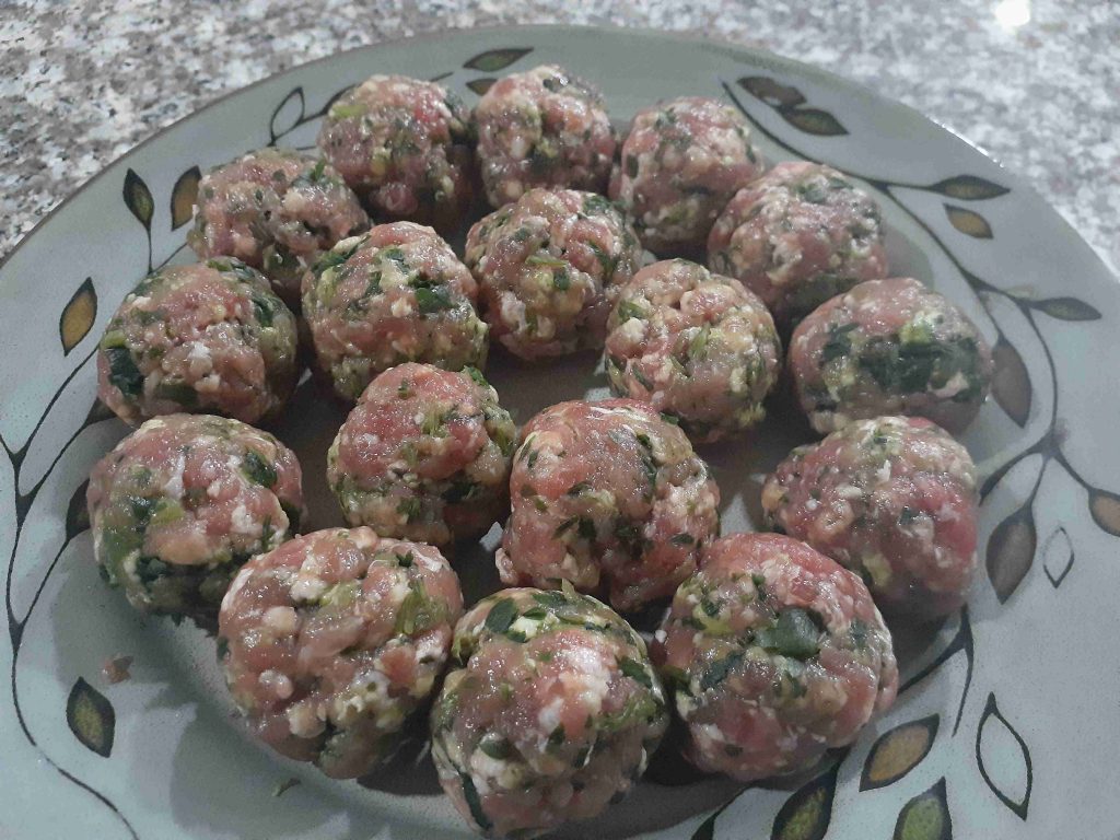 1 / اول شي منجيب اللحمة ومنفرمها سن خشن مع البقدونس والبصل ومنحطها بالجاط ومنعجنها كتير منيح مع بعض بعدين منحط عليها ملح وفلفل أسود وبعدين منعملهم كرات بحسب الحجم الي انتي بتحبي