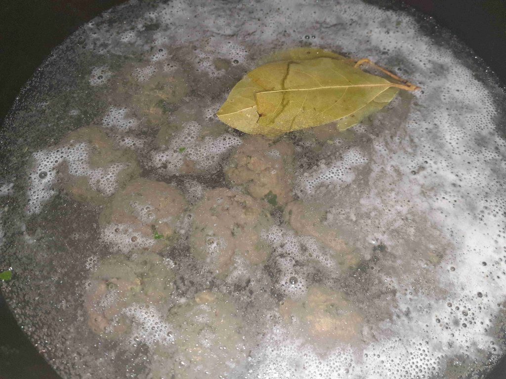2 / بتجيبي طنجرة وبتحطي فيها ماء وورق الغار وملح وعلى الغاز لحتى تغلى الماء منزل كرات الكفتة ومنتركهم يغلو شي 10 دقائق ومنشيل الرغوة الي بتطلع ع وجه اللحمة بعدين منصفيهم من الماء ومنترك اللحمة ع جنب