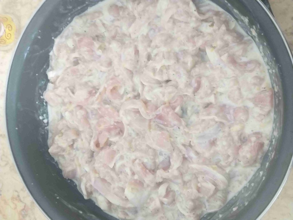 ومنضيف باقي المكونات اللبن والتوم وعصير اللمون والخل والبهارات وبنخلطهن لتنعم لتتبيله