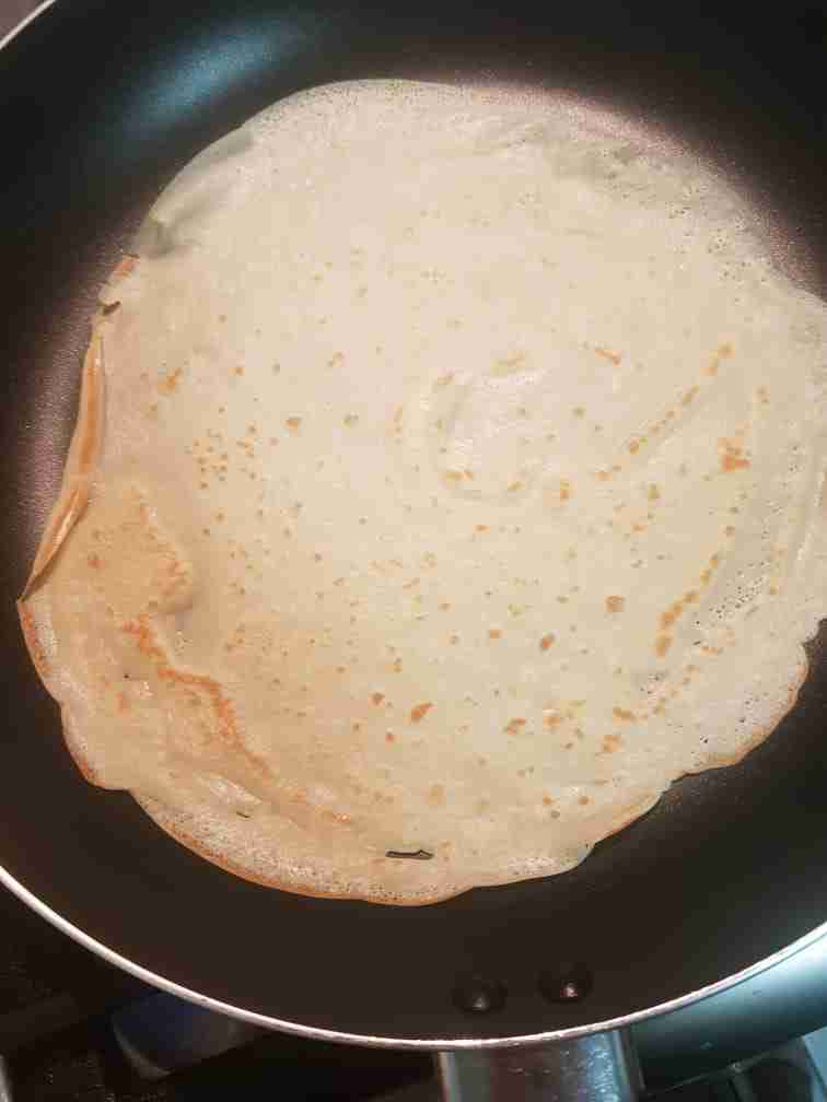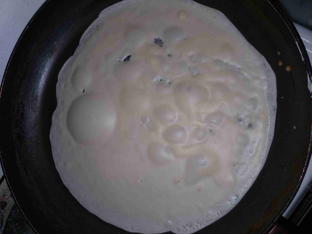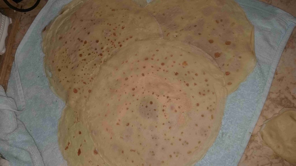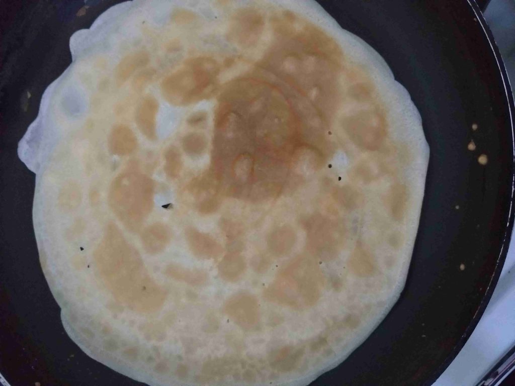 نقوم بوضع خليط العجينه في المقلاه ونمددها