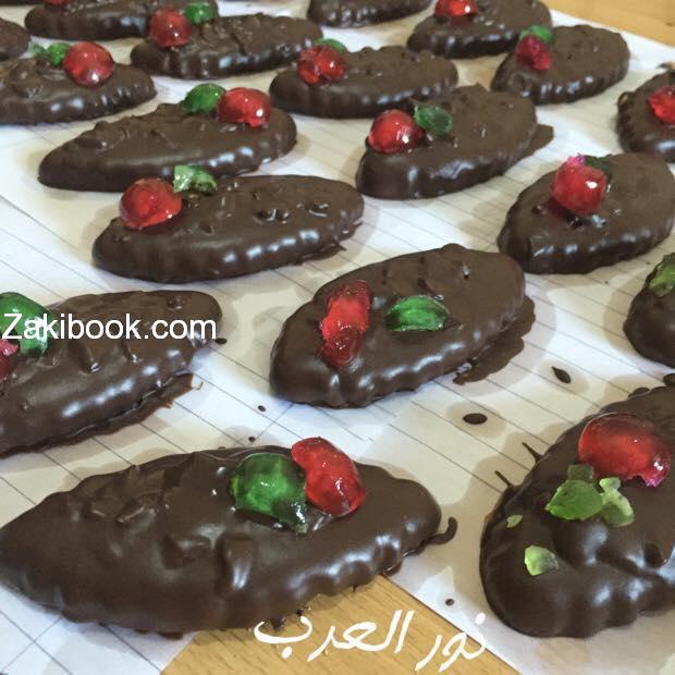 وتشكل وتدهن من فوق بالبياض ويرش اي نوع مكسرات تكون نيه يعني غير محمصه وعلى الفرن بدرجة 200من تحت وفوق النار وبعد يبرد يغمس بالشكلاطه الخام الذائبه بحمام مائي ..