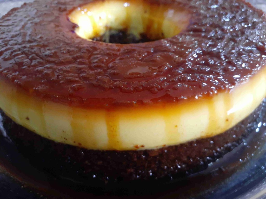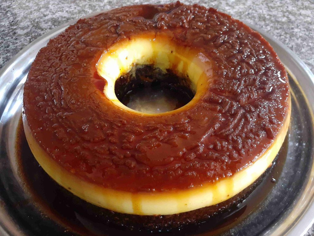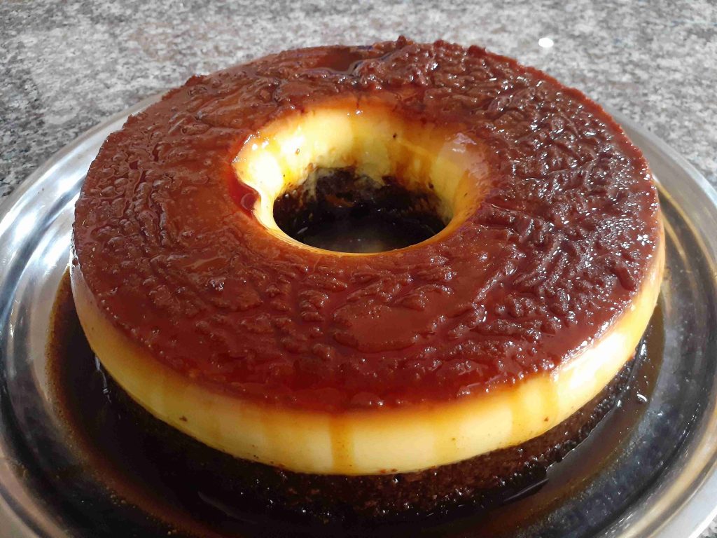 وتاني يوم لما أطلعها بسخن ماء بصينية وبحط القالب في بس لمدة دقيقة حتى يذوب الكراميل ومنقلب ومنقدمها