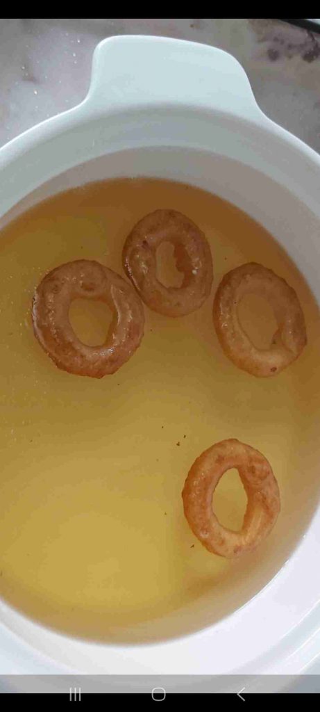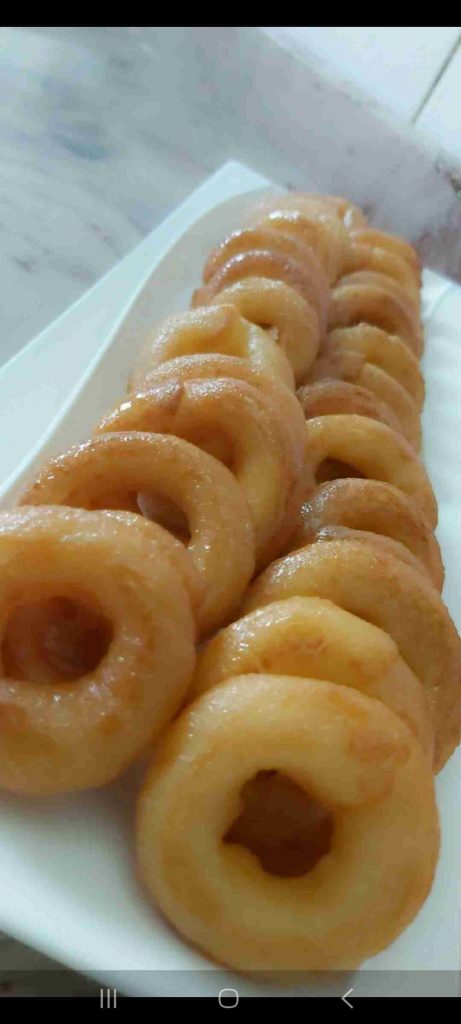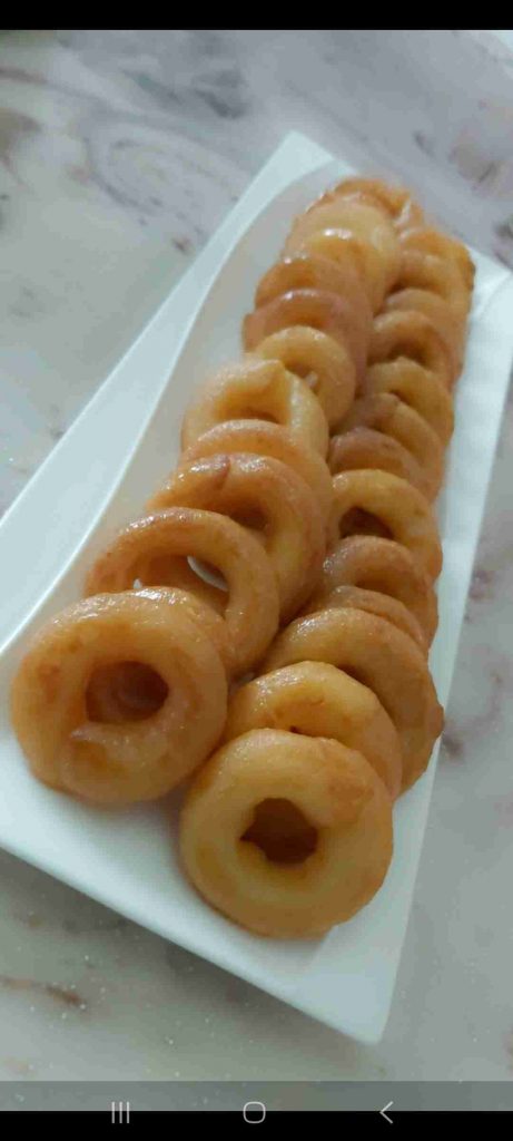 تقلى بزيت غزير الى ان تحمر كن الجهتين وتوضع مباشرة في الشيرة لمدة ٣ دقائق تقريبا …