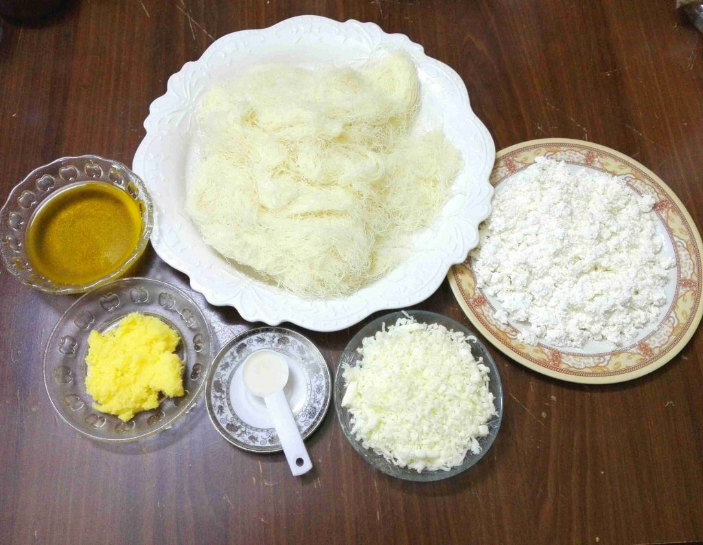- عجينة الكنافه تقريبا نص كيلو للصينيه الصغيره