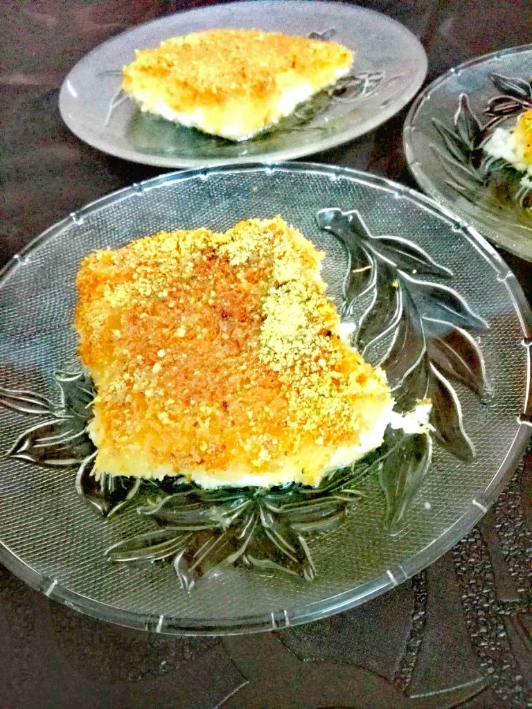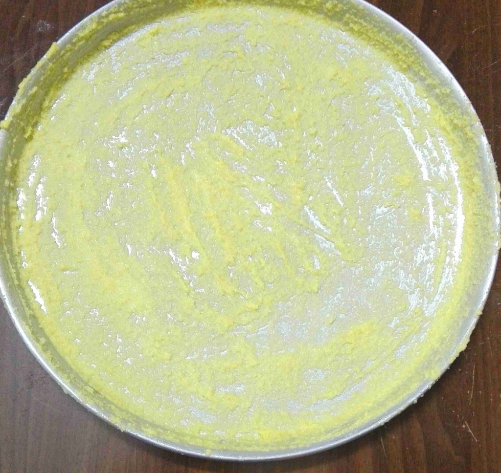 & ثم بضيفها بصينيه مدهونه بالسمنه وبنزود السمنه يعني تكون مبينه وظاهره السمنه (والصينيه لازم تكون حوافها قصيره عشان لما نقلبها ما تفتت )