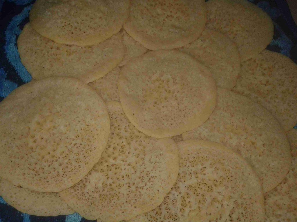 بضع جميع المواد بالخلاط وبضيفلهم الماء الدافىء وبشغل عليهم الخلاط وبتركهم نصف ساعه وبحركهم من الاعلى للاسفل مزبوط حتى اخرج منهم فقاعات الهو لانها بتاثر على شكل الحبه والعمل لازم يكون بمقلاه تيفال او قرانيت حتى ما يلتصق بنحمي المقلاه وبنوطي النار اول ماتنشف الحبه بنشيلها على فوطه نظيفه وبنغطيها حتى ما تنشف وبحشيهم بالحشوه يلي بحبوها افراد الاسره اما بقليهم او بتشويهم بالفرن المره شويتهم وكانوا طيبين لكن القلي اطيب بس الشوي صحي اكثر وطبعا بتنزليهم بالقطر البارد وبترفعيهم في صحن التقديم طبعا ما عملت كميه كبيره وما بحب افرز القطايف وهذه الكميه عملت معي اكثر من عشرين حبه نعمة كريم والحمد لله رب العالمين
