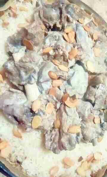 وبنسوي الرز جنبو واللوز على الوجه وخبز شراك تحت الرز وبنسقيه لبن