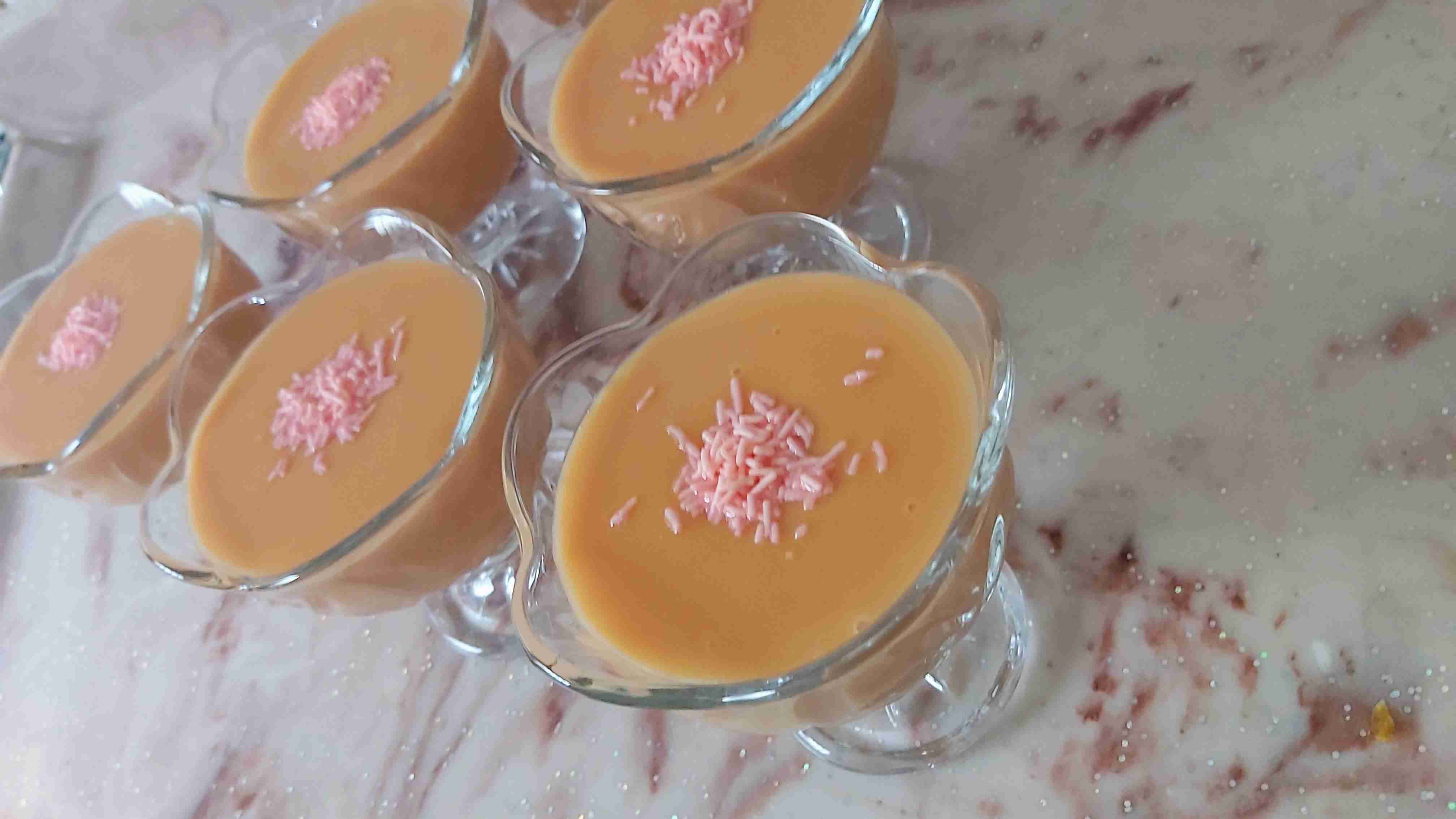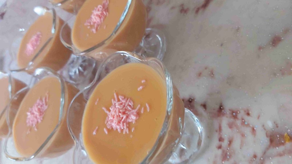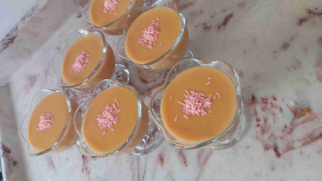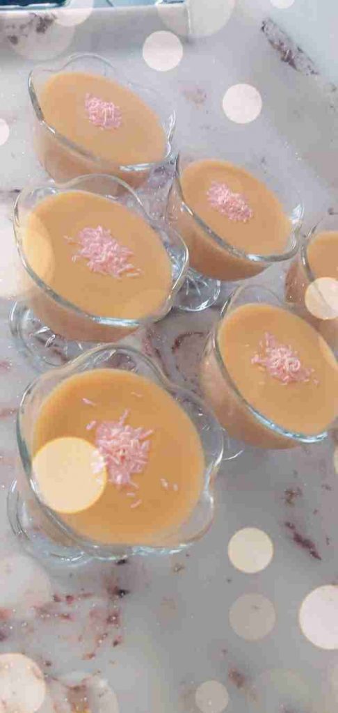 يصب في صحون ويبرد ويقدم…