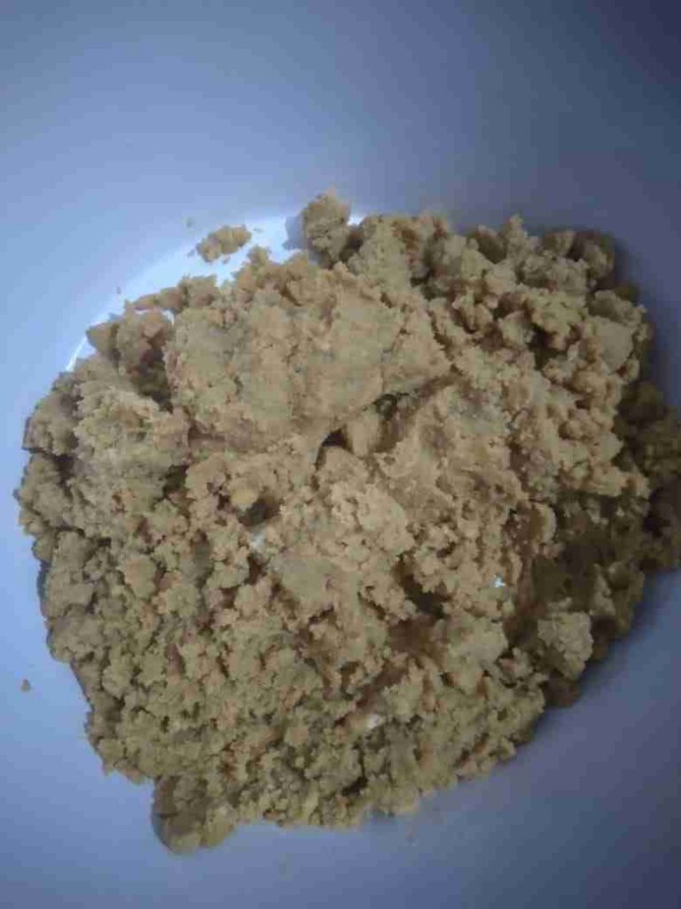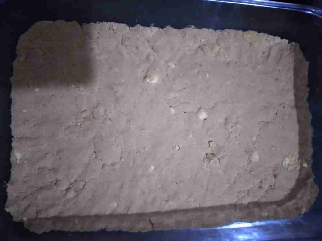 اول شي منطحن البسكويت طحن ناعم ومنحط عليه الزبدة الذايبة ومنعجنهم مع بعض ومنحطهم بالبايركس حجم كبير ومنرصهم كتير منيح