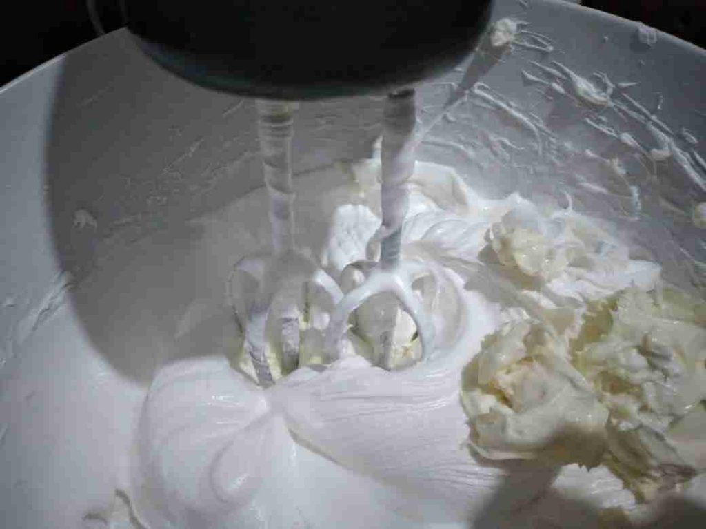 تاني شي منخفق الكريمة مع الحليب المتلج بعدين منضيف عليهم القشطة والجبنة بعد ما نهرسها ومنخفقهم كتييير منيح ومنحطهم طبقة تانية فوق البسكويت