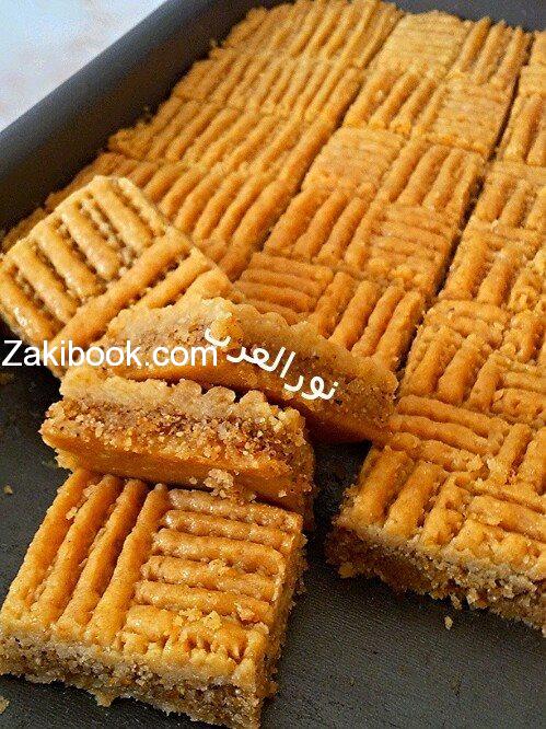 وزعي هل الحشوة على سطح الطبقة الاولى وساويها بيدك حتى تكون طبقة ملساء ..وخوذي الجزء الثاني من العجينة وافرديه بين ورقتي زبدة او بين طبقتي نايلون وحطي هل الطبقة فوق الحشوة وحاولي تسدي جميع الفراغات اللي ممكن تكون الحشوة ظاهرة منها وبعدين ساوي سطح الطبقة جيدا استعملي كيس نايلون فوق العجينة وساوي بيه سطحها…قصيها لمربعات صغيرة او مثلثات او مكعبات ..