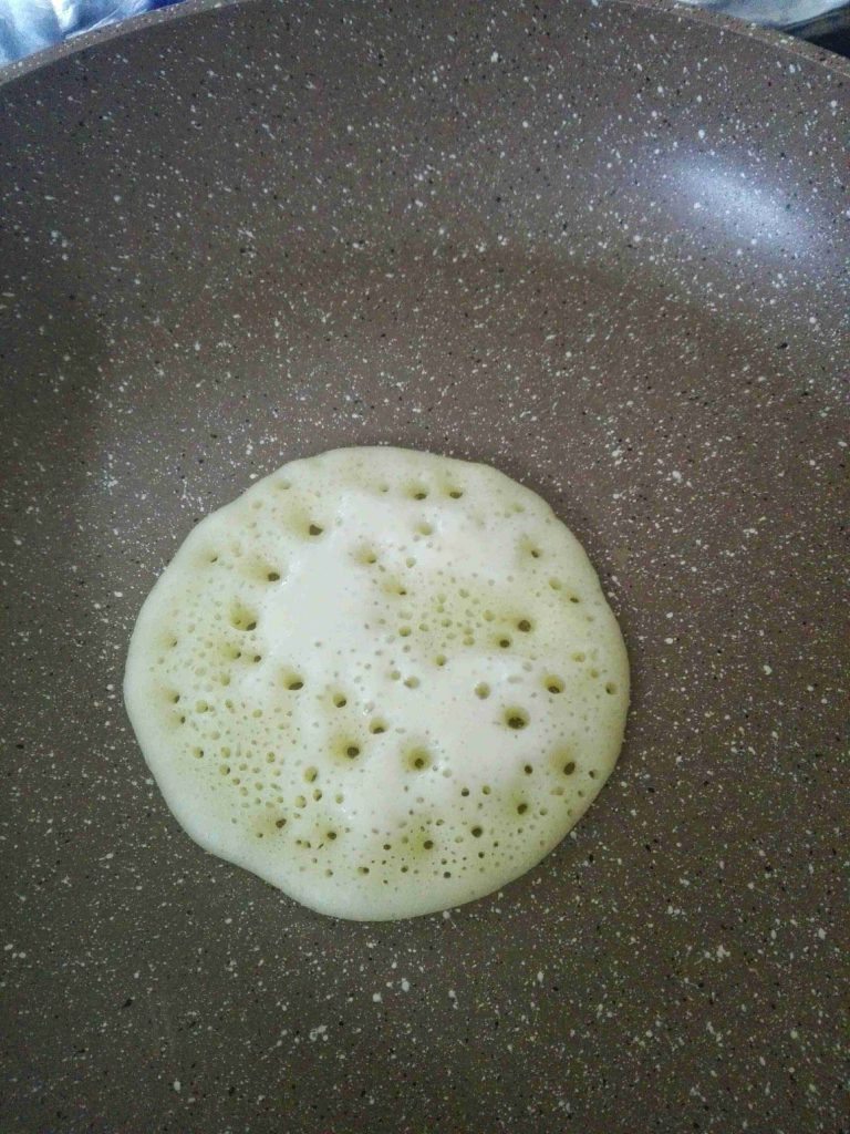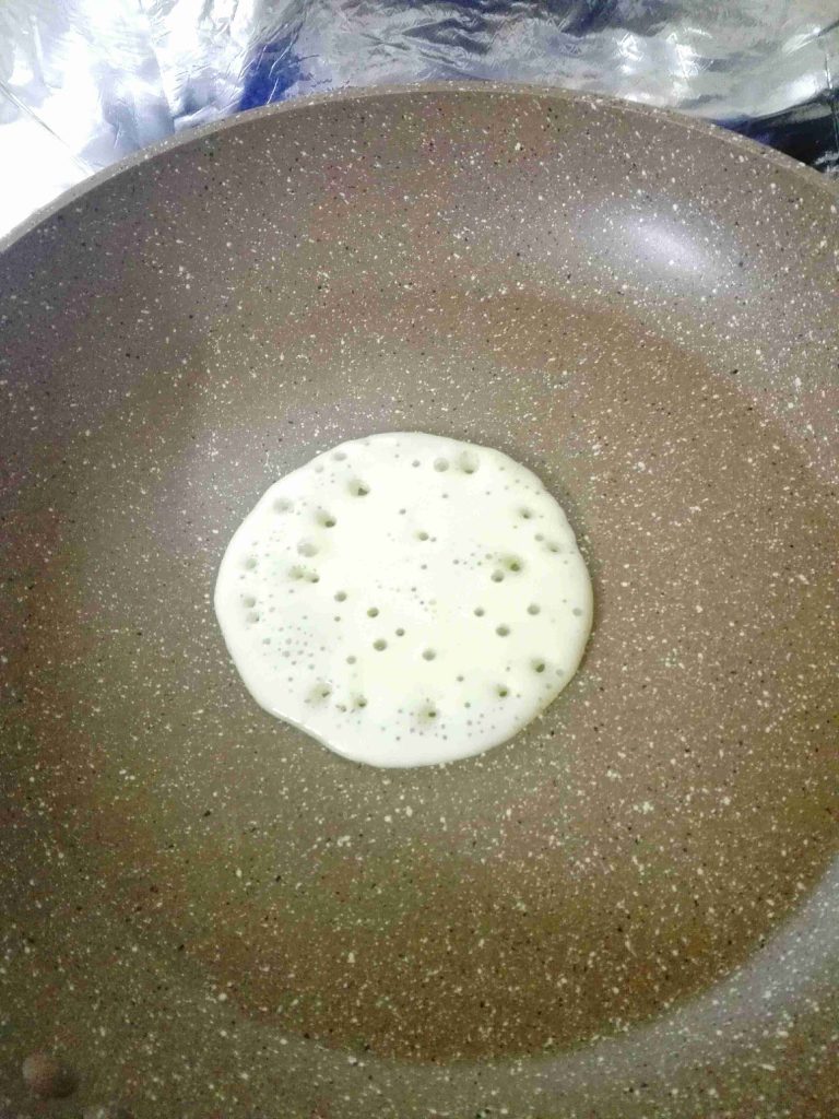 & بسخن المقلاه غير لاصقه لمدة خمس دقائق ومن ثم بوطي النار لأقل من الوسط وببلش بعمل القطايف بصب من الخليط لحتى يتشكل عندي الشكل المطلوب والحجم حسب ما بتحبو صغير ام كبير ..لازم الخليط ينصب بنص المقلاه