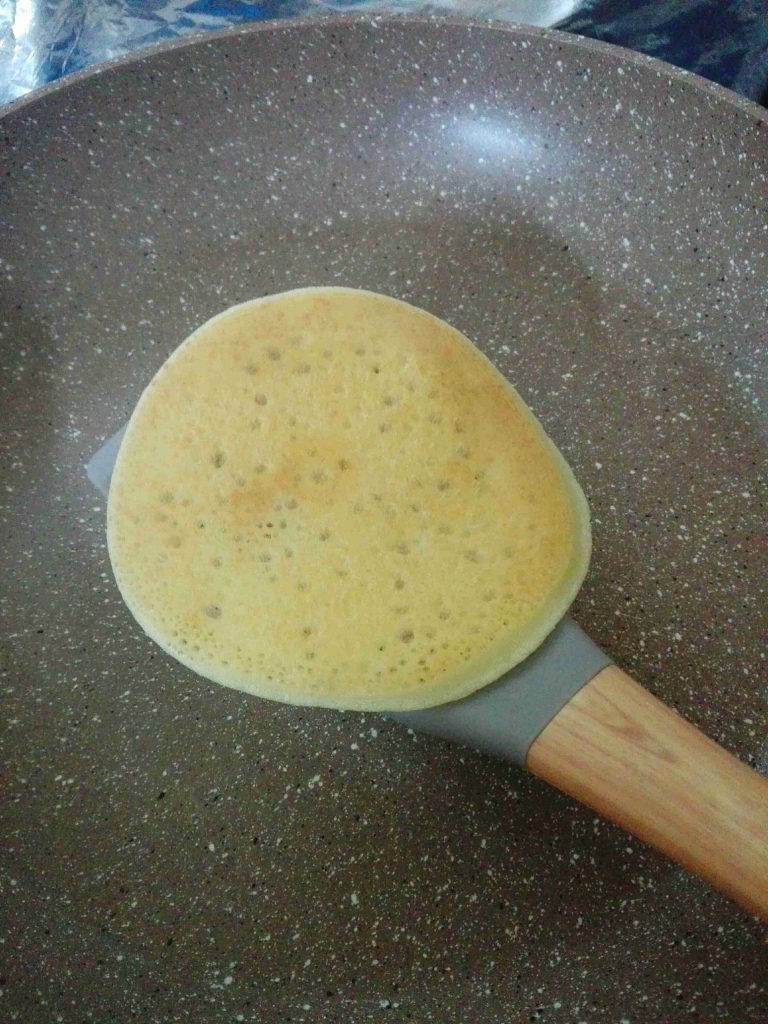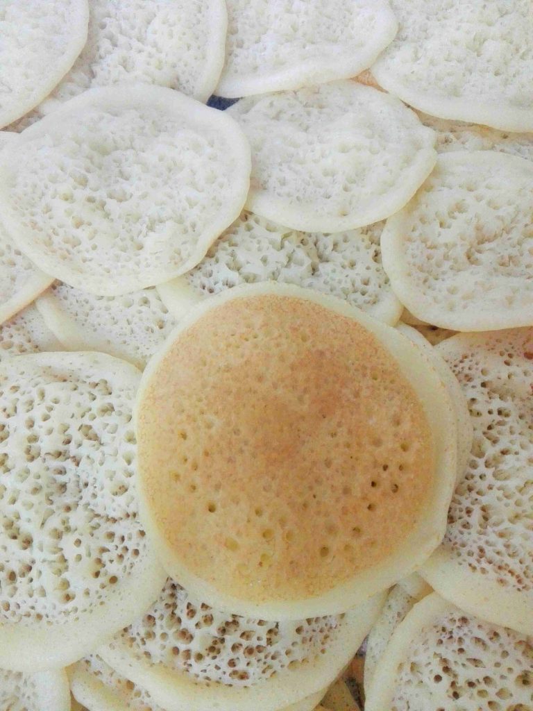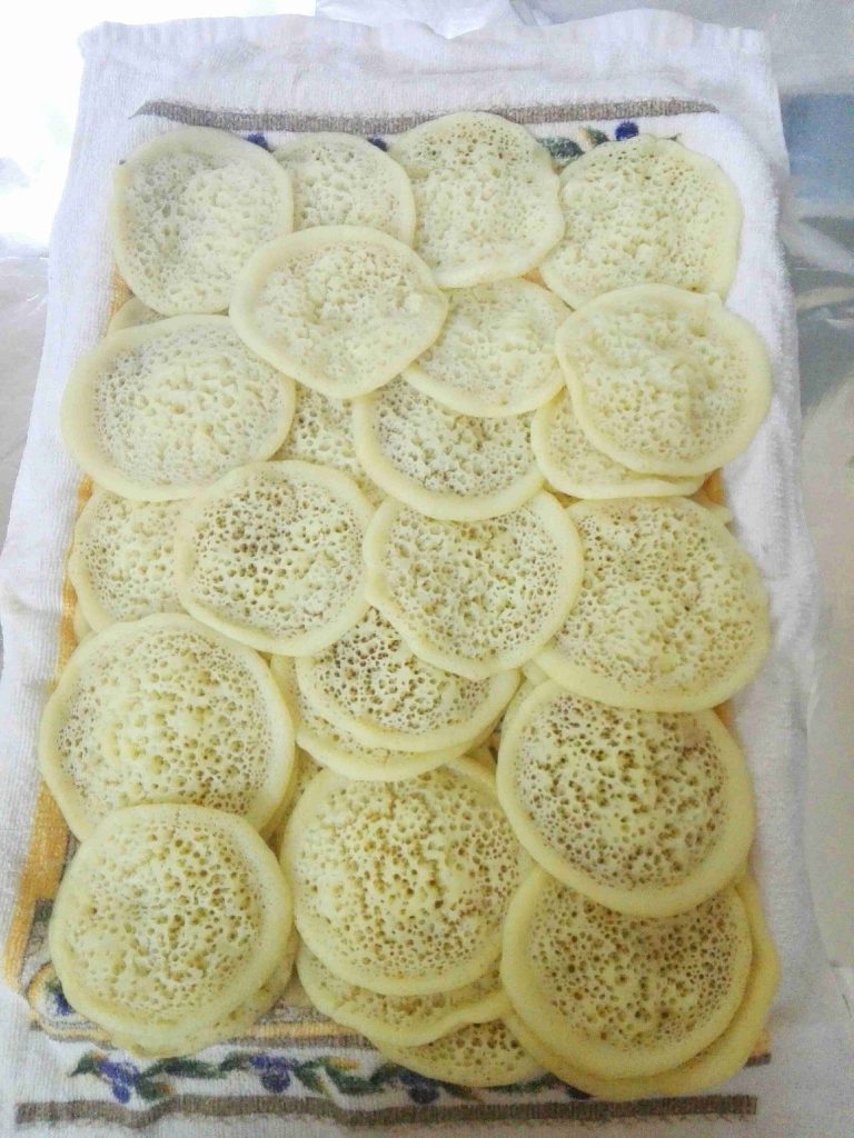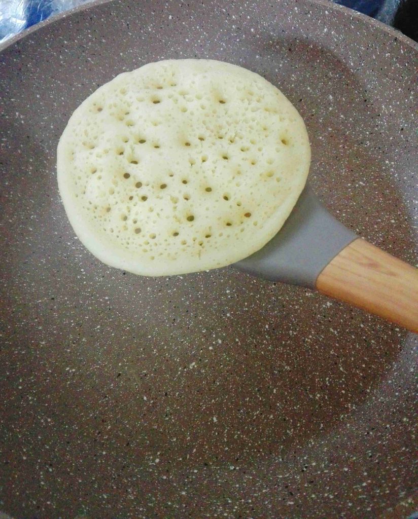 ولما يتنشف قرص القطايف بشيله وبغطيه عشان ما ينشف