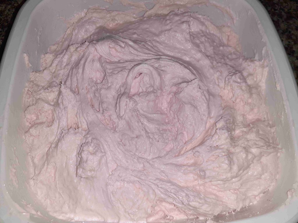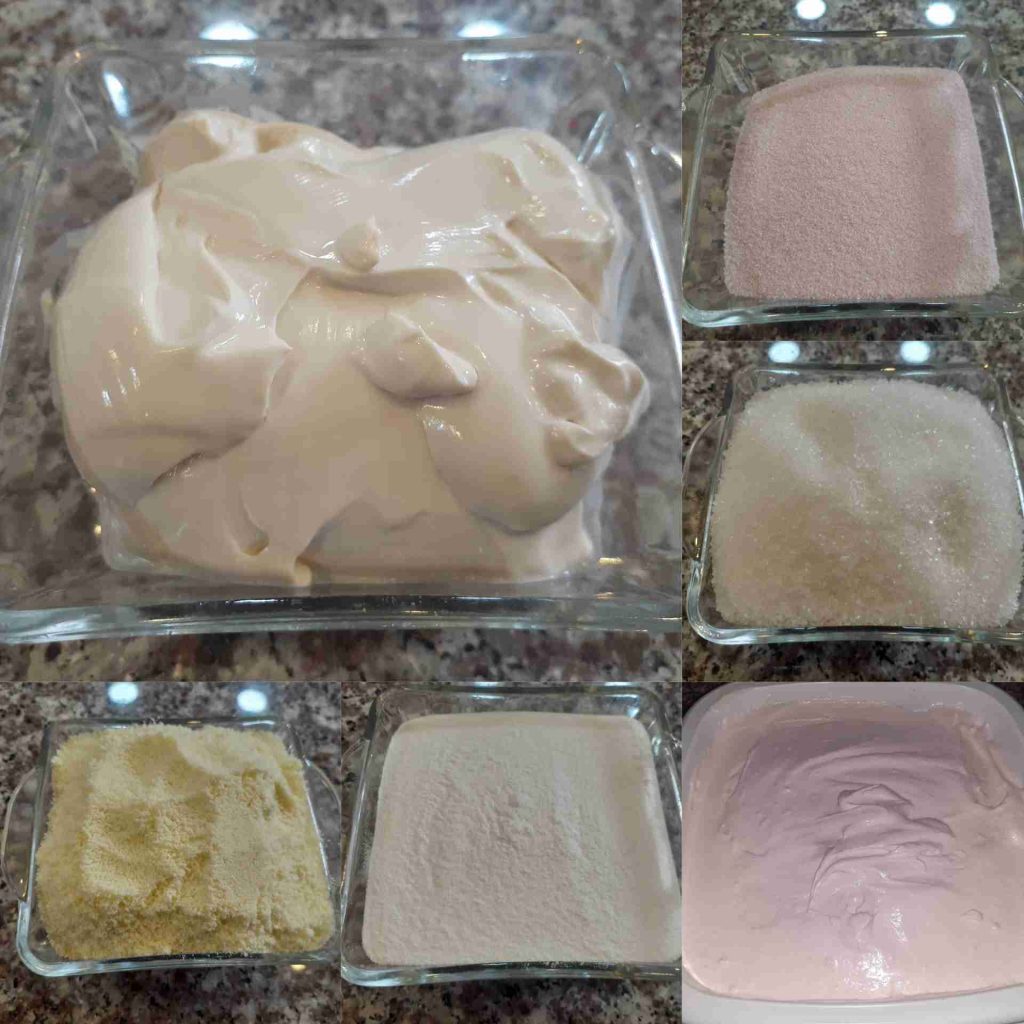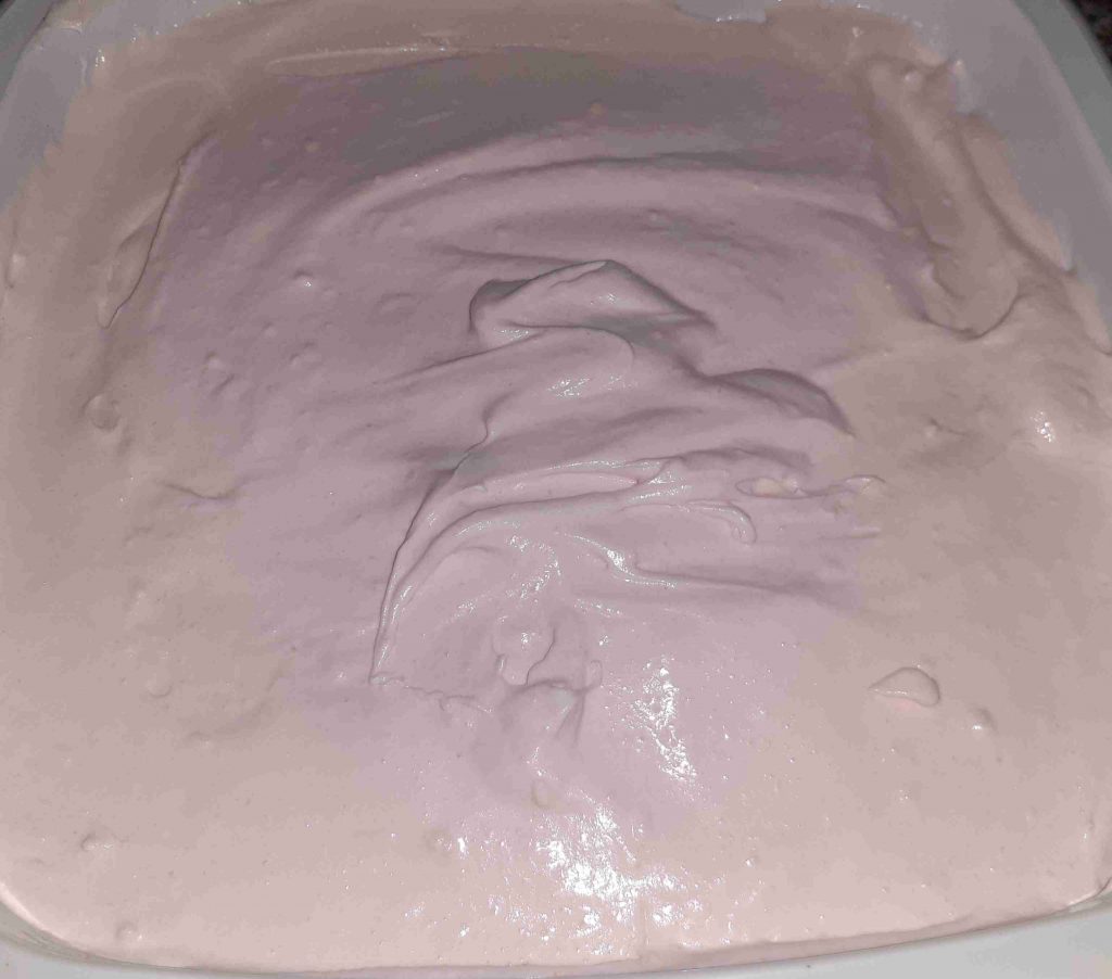 ملاحظة اذا بتحبي لونها يكون زهري أكتر ممكن تستخدمي الصبغة تحطي نقطة منها بس انا ما كنت موجودة عندي اكتفيت باللون الطعم الي أعطاهم ايا جيلي الفراولة