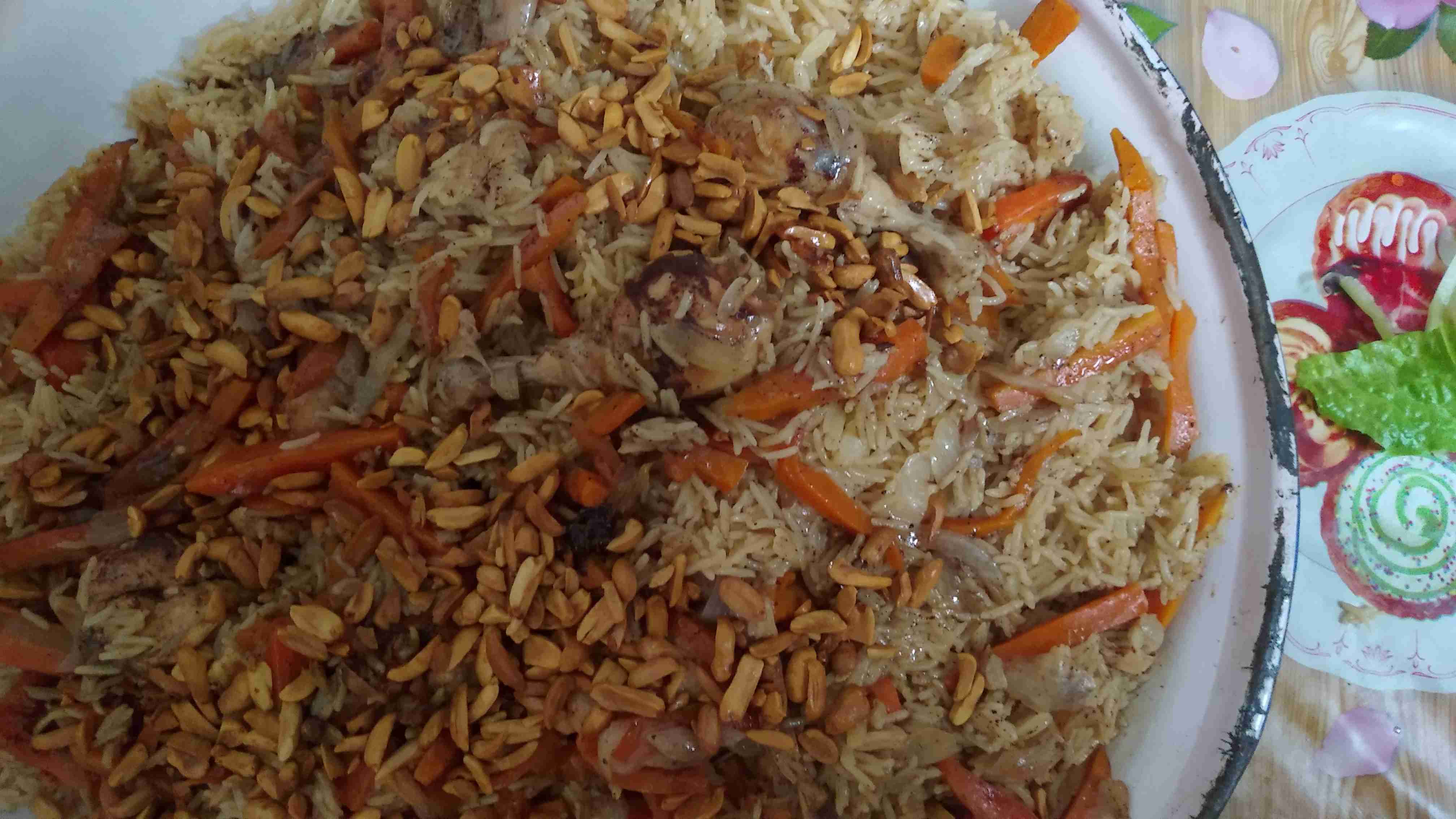 بعد ان ينضج الجزر و الدجاج نضيف الأرز و المرقة و نتركه حتى ينضج