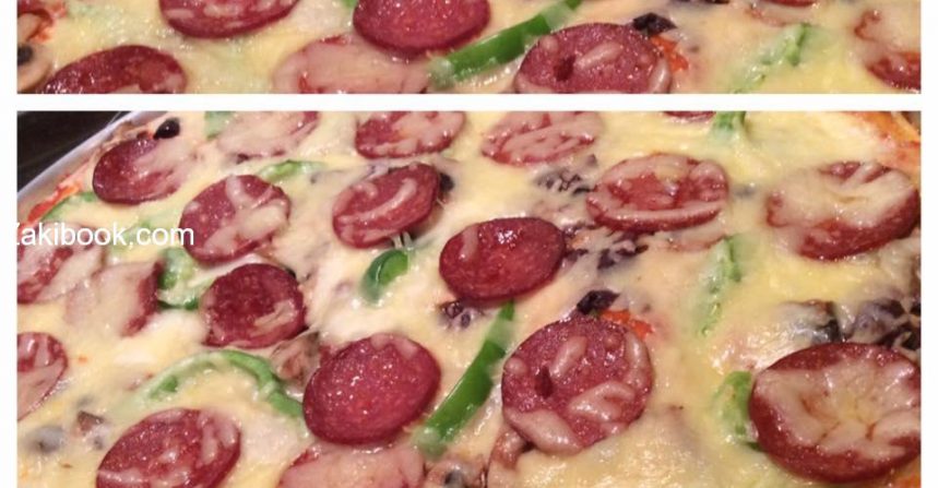 ثم يرش فوقها الجبنه الموزاريلا ويضاف فوقها شرائح البيروني وتخبز بفرن حامي وتوضع الصينية بأسفل الفرن حتى تأخذ لون وتصبح مقرمشه متل الجاهز …