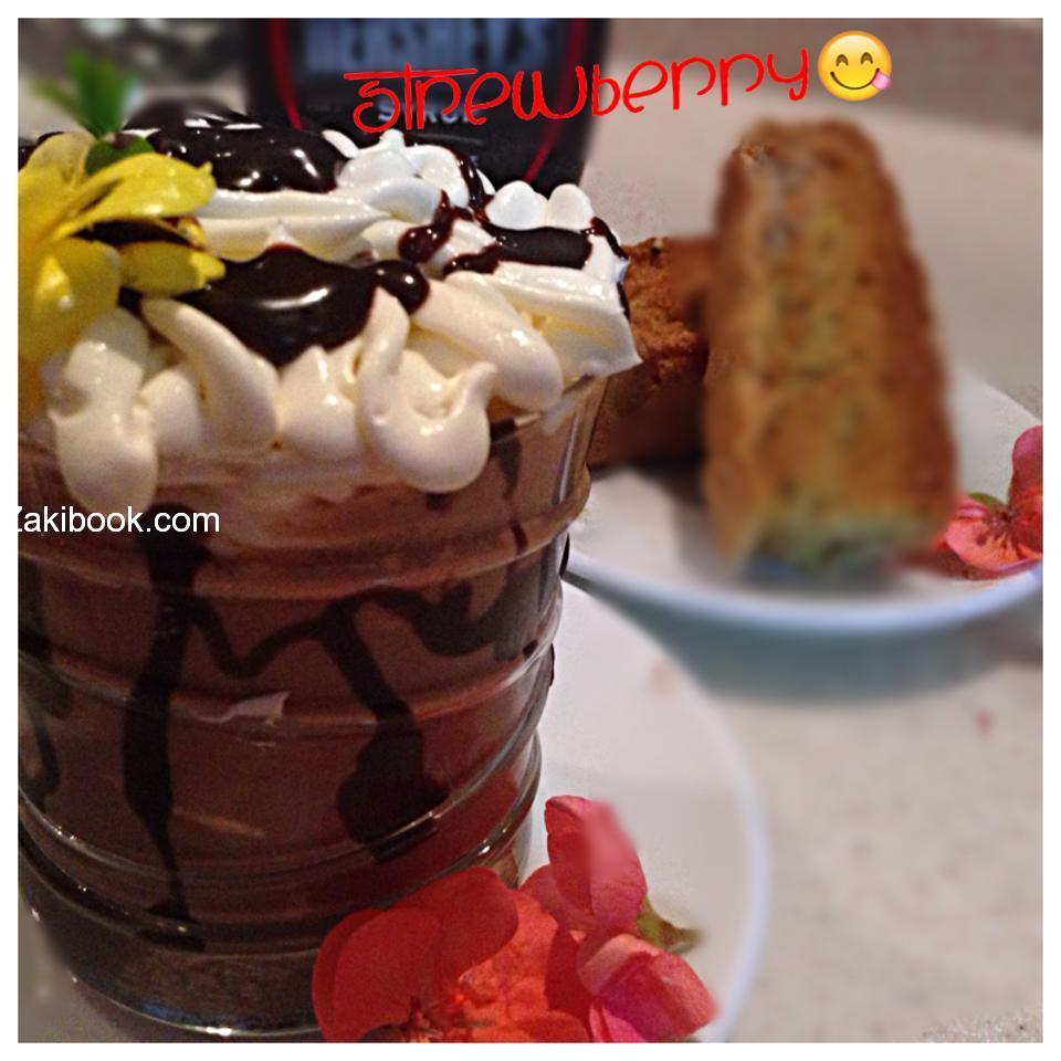تخلط جميع المكونات بالخلاط الكهربائي ثم تصب في كوب التقديم ويقدم للتزين نزينه بالكريما وصوص التوفي او الشوكولا