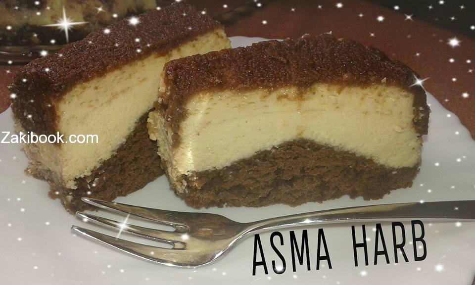 منخفق كل المواد مع بعض لحتى تتجانس وبعدها منديرها فوق طبقة البراونيزمنغطي القالب بورق الألمنيوم ومنحط القالب بصينية فيها ماء وعلى الفرن على درجة حرارة 170 لمدة 90 دقيقة وبعدهيك خليها لتبرد وعلى التﻻجة لمدة 6 ساعات وتقدم باردة وصحتين وعافية .
