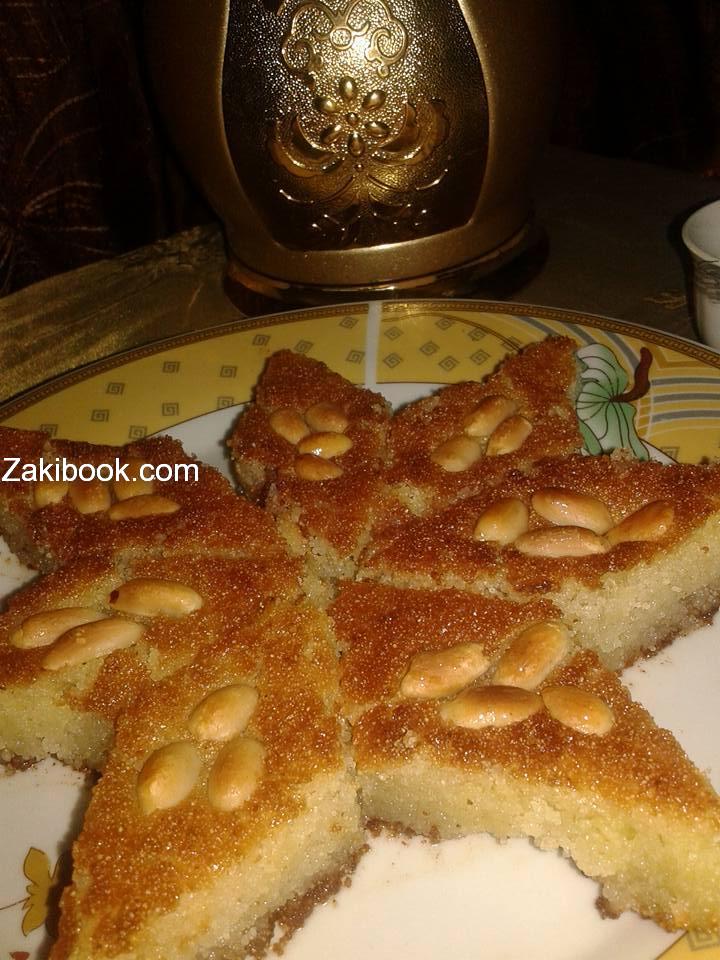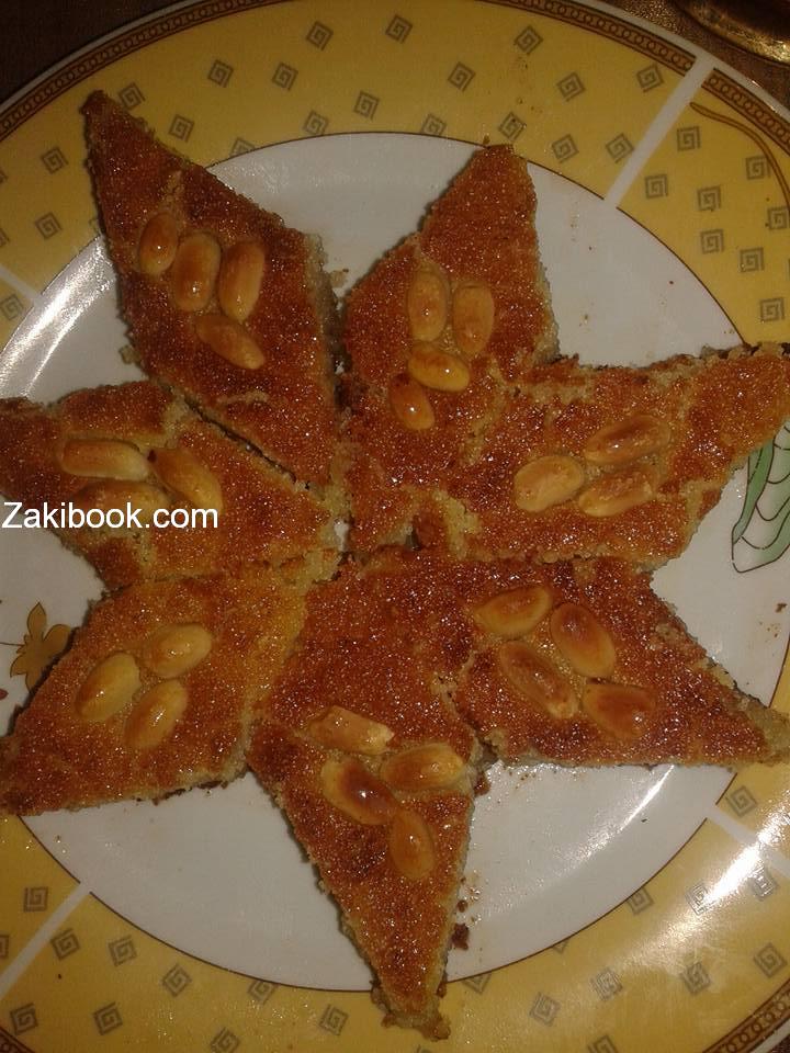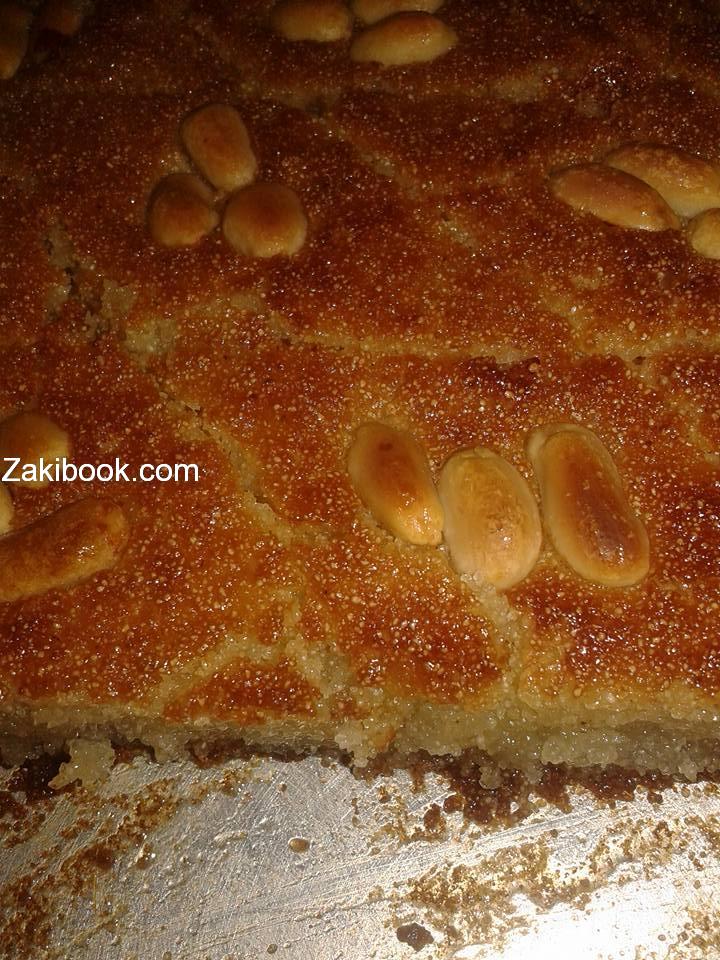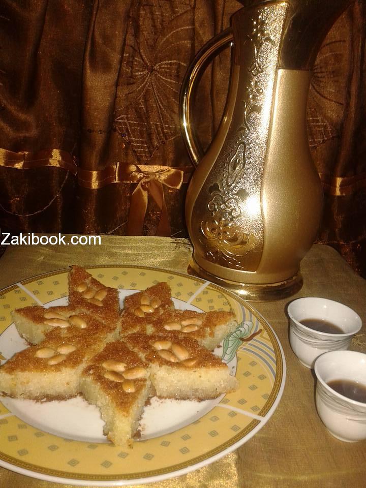 3 كاسات سميد وكاسة ونص سكر وملعقة صغيرة بيكنج باودر وملعقة صغيرة قرفة و3 مﻻعق كبار جوز هند بنخلطهم بجاط ونضيف عليهم ملعقتين سمن سائل وبنحركهم منيح منيح بعدين بحط ربع ملعقة صغيرة كربونة في كاسة لبن (زبادي) وبحركها وبضيفها فوق السميد وبحركهم تقليب مش عجن واخر شي بضيف تقريبا كاسة مي مغلية او اقل شوي حسب نوع السميد بتصير عجينة رخوة نوعا ما يعني اقل من الوسط بشوي