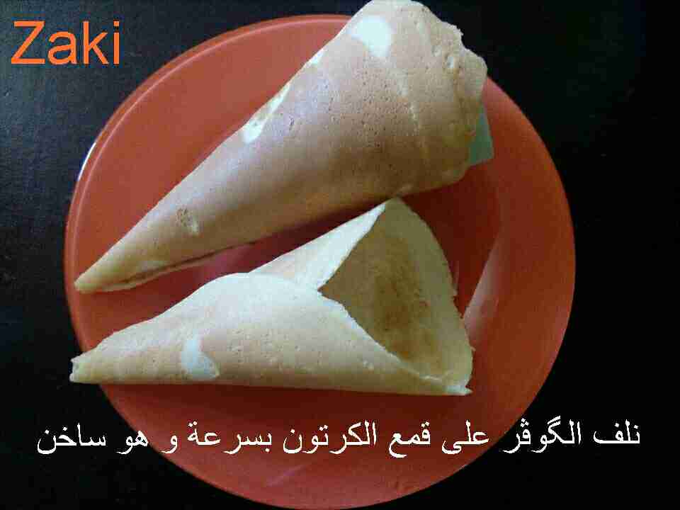 مباشرة عند إزالتها و بسرعة جدا نشكلها على القمع لي صنعناه من الكرتون مسبقا.