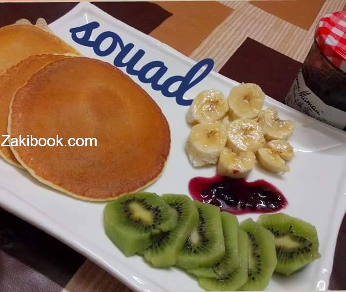 في وعاء الخلاط تخلط جميع المكونات معا مدة دقيقتين. في مقلاة على النار ندهن القليل من الزبدة ويوضع في وسط المقلاة مقدار مغرفة من خليط البان كيك يترك على نار خفيفة حتى يبدأ ظهور الفقاعات وسط الخليط ثم يقلب على الجهة الأخرى ليحمر قليلا ويرفع تكرر الطريقة لباقي الكمية.