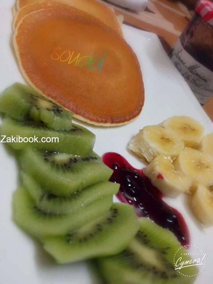 عند التقديم توضع قطع البان كيك مع زبدة او شوكولاتة سائلة او عسل او مربى بالاضافة الى الفواكه. بالعافية