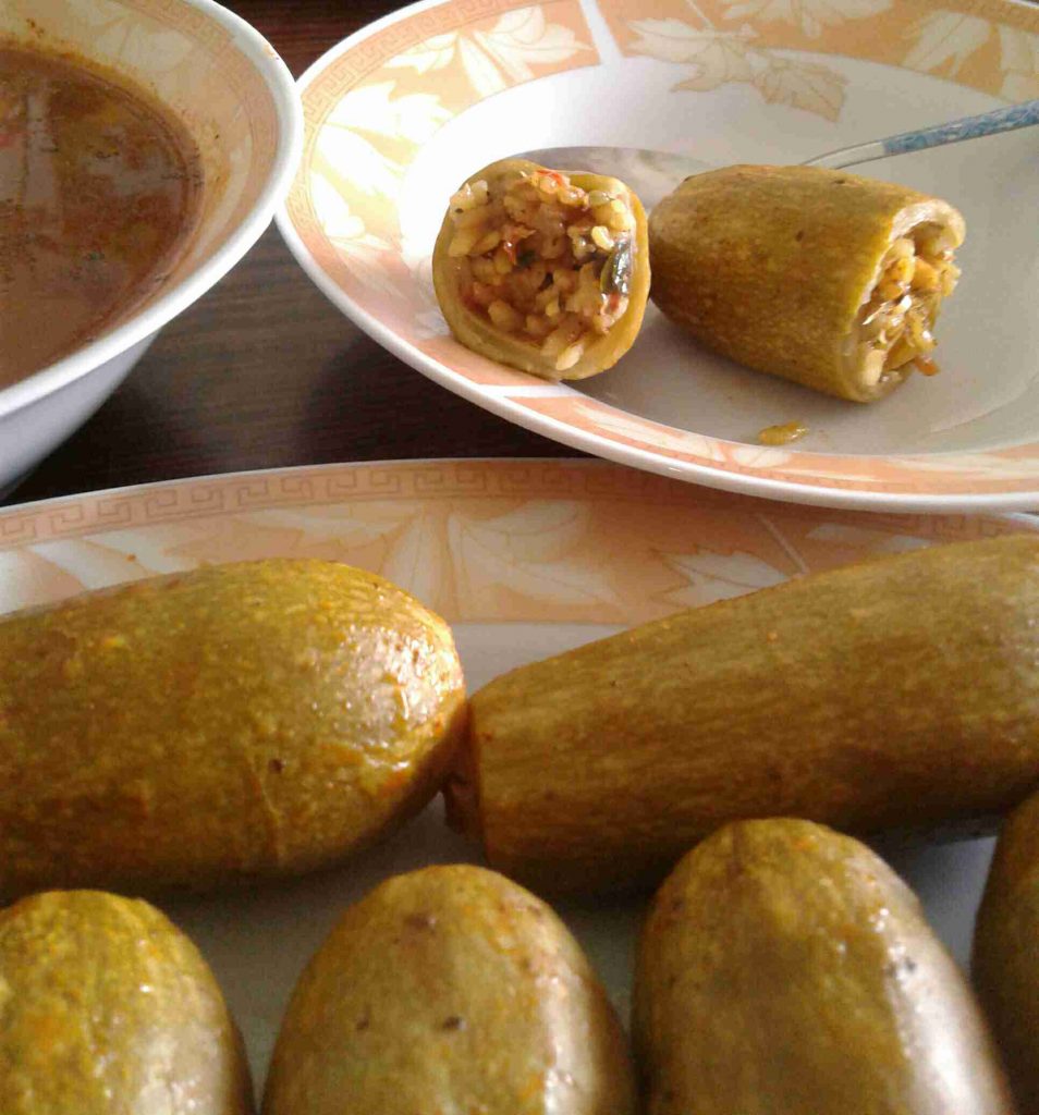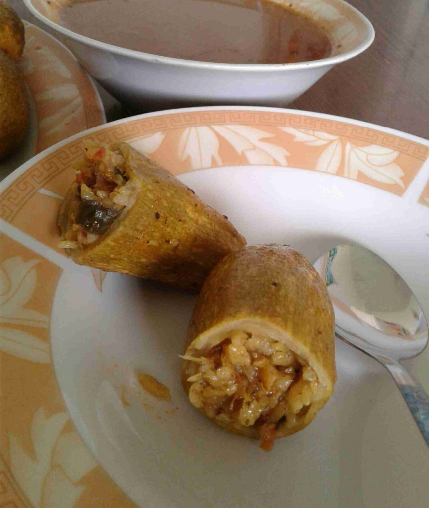 – نضيف الأرز المنقوع للخضار ونقلب جيدا ، ونتركها حتى تبرد، ونحشو بها الكوسا.
