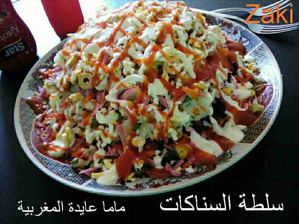 سلطة السناكات عشاء صيفي ملكة المطبخ , معكم صديقة زاكي الشيف الموهوبة , السلام عليكم أخواتي العزيزات، حبيت أشارك معكم في المسابقة بسلطة معروفة عندنا في محلات الوجبات الخفيفة و تقدم كمقبل أو كنسدويش اقتصادي ، مكوناتها بسيطة لكنها مشبعة و لذيذة كوجبة عشاء صيفي اتمنى ان تنال اعجابكم و تجربوها: