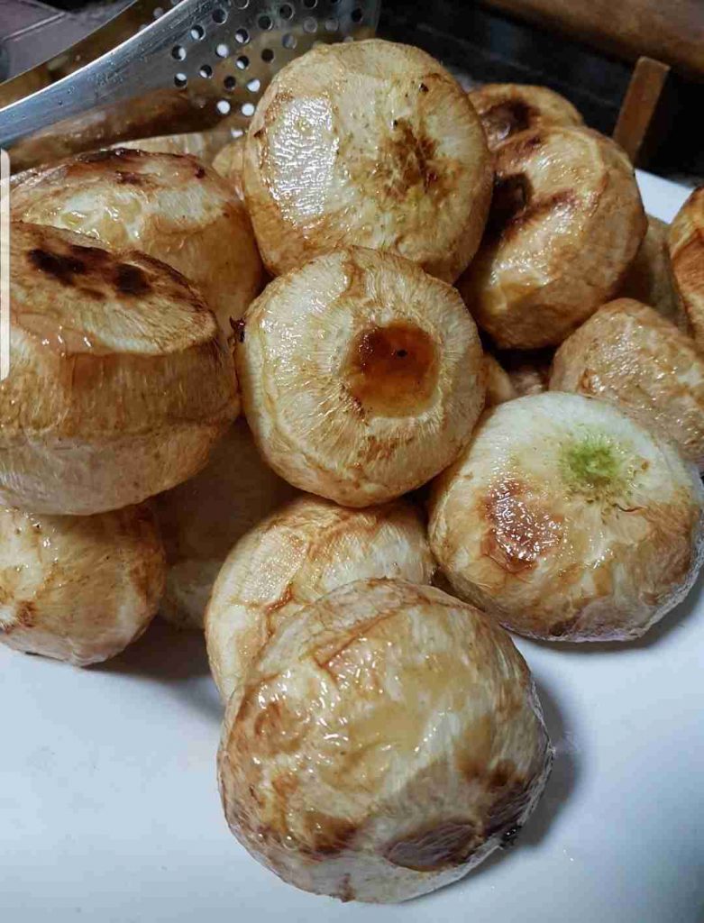 بنقلي اللفت بالزيت حتى يصبح لونه ذهبي