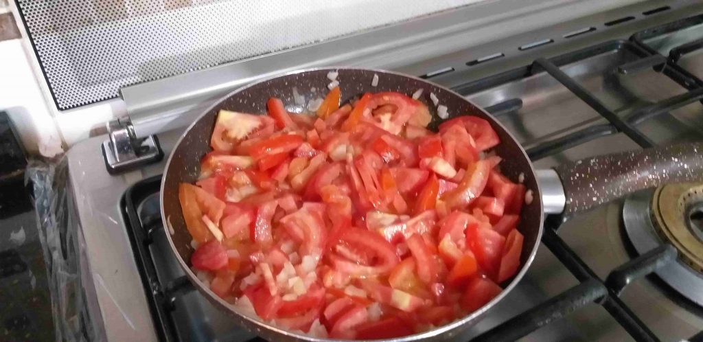 • ٤ حبات بندورة مفرومة وسط