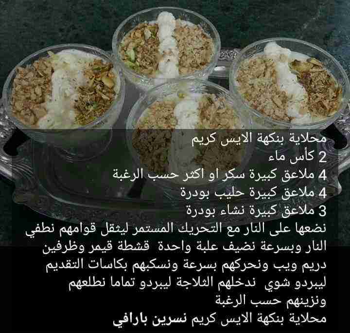 نحركهم بسرعةونسكبهم بكاسات التقديم ليبردو شوي نضعهم بالثلاجة ليبردو تماما نطلعهم ونزينهم حسب الرغبة بالفستق والجوز واللوز وحسب الموجود والف صحة وهنا