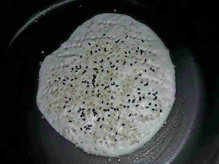 نشعل الفرن على اعلى درجة حرارة من فوق وتحت ثم ناخد من العجينة كور ونفردها بصينية مدهونة زيت بسماكة نصف سم ونضع عليها جبنة شيدر مبروشة او قطع مربعة ثم نلمها ع شكل بقجة كما واضح في الصور ونضغط عليها بيدنا ونحاول نفردها ومقرها بسماكة نصف سم ونضع عليها سمسم وحبة البركة ونضغطهم بيدنا ونخرمها بالشوكة من فوق وع الفرن 10 دقائق ثم نقلبها 4 دقائق لتحمر ونطلعها ونغطيها بمنشفة نظيفة وكيس حتى ماتنشف وتقدم ساخنة مع الشاي والف صحة