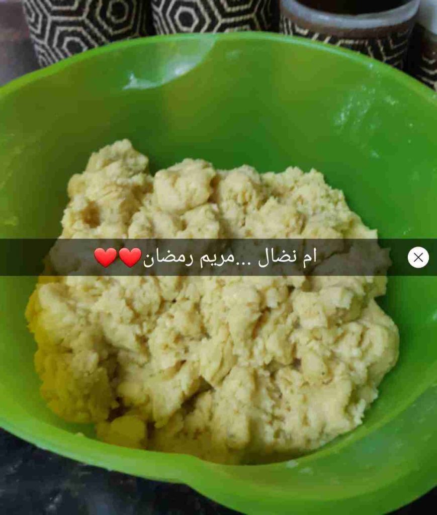 وبتعجني العجينة باليانسون المذوب فيه الحليب وبطريقة البس لحتى تحصلي على عجينة طرية سهلة التشكيل وبتبلشي تقطعي العجينة لكرات صغيرة وتحشيها قسم تمر وقسم فستق حلبي. .حسب الرغبة طبعا